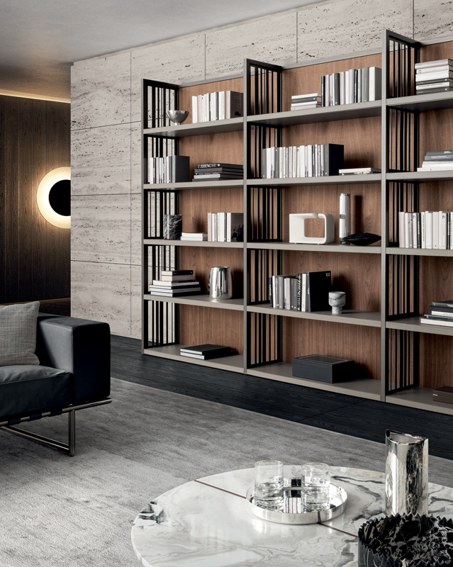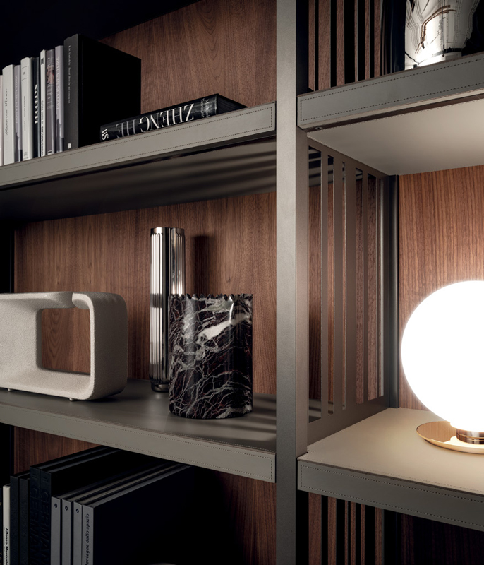 Стеллаж Grid вдохновлен работами художника Пауля Клее, который создал сбалансированные и изысканные произведения искусства с помощью геометрического декора. Простота каркаса шкафа дополняется окрашенными металлическими боковинами со специальным лазерным пантографическим рисунком, который воспроизводит современный декоративный дизайн.