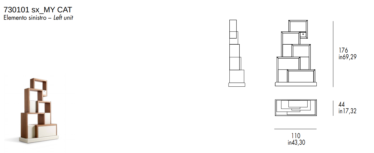 Левый элемент мебели со структурой из многослойного шпона, с 1 ящиком и 3 лакированными дверцами.