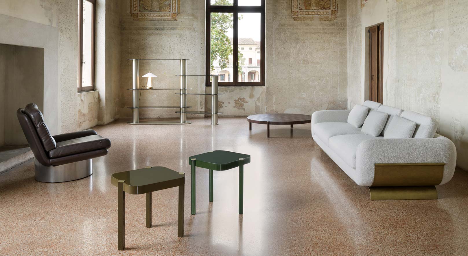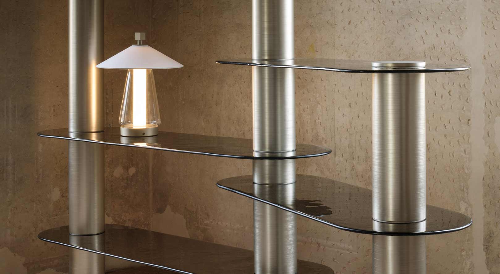 Это не просто модульная библиотека. Благодаря металлическим основаниям цилиндрической формы эта модель легко вписывается в любой интерьер. Броский контраст между рельефным бронзовым стеклом и металлической отделкой передает дух современного образа жизни.