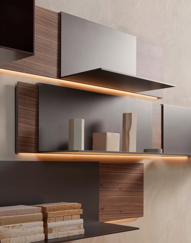 «Пентаграмма» Питсу Кедема утонченно интерпретирует концепцию живой системы, делая акцент на легкости. Отличающийся удивительной простотой как в компоновке, так и в монтаже, дизайн начинается с прикрепленной к стене панели из экструдированного алюминия, к которой крепятся различные подвесные элементы, открытые отделения или полки. Его конструкция вдохновила на название: настенная задняя панель, на которую наносятся аксессуары для создания композиций, напоминает нотный стан, на котором написаны ноты для создания мелодии.