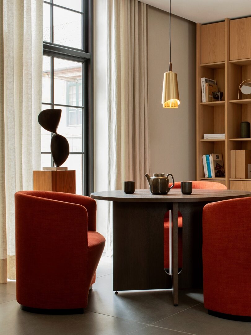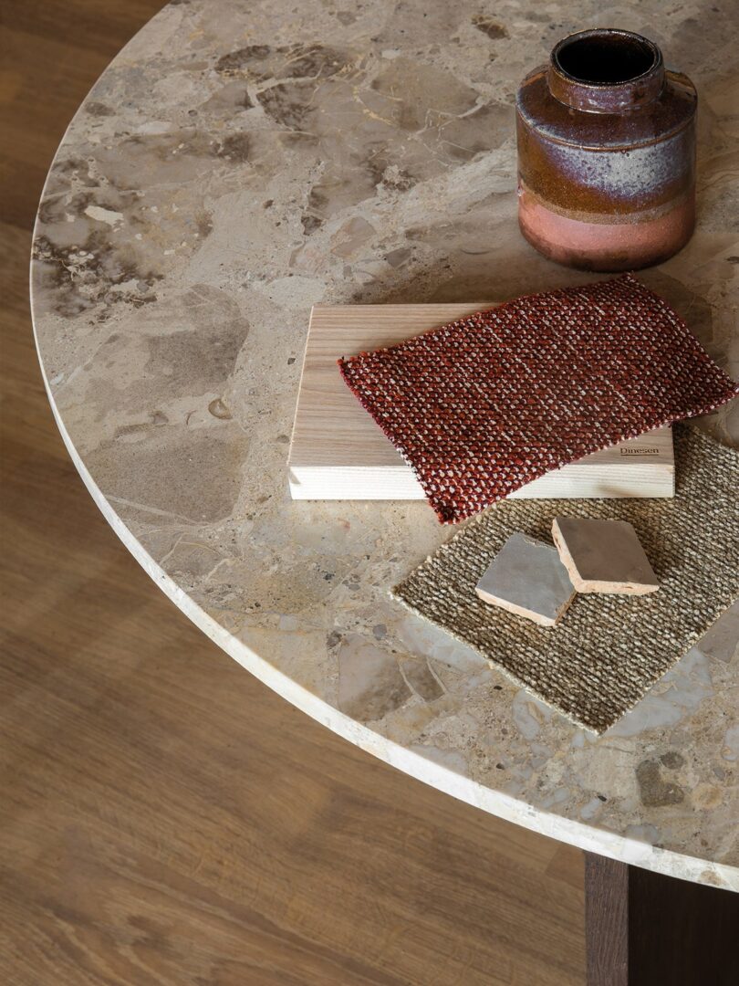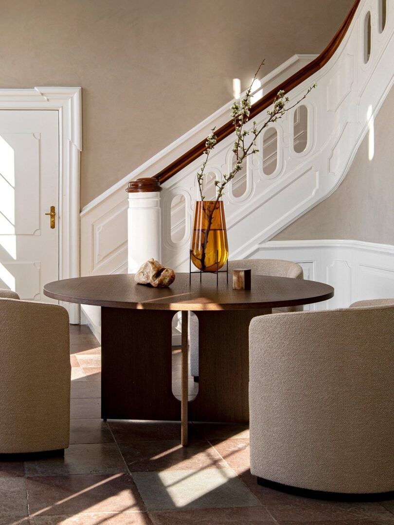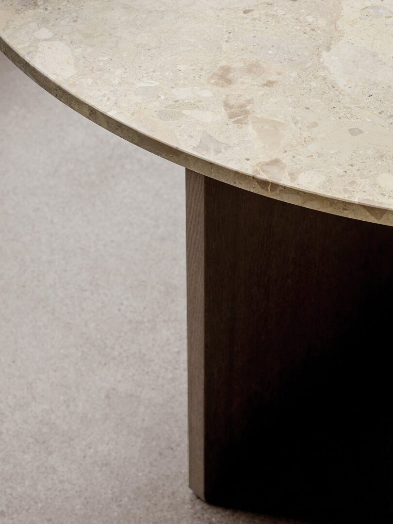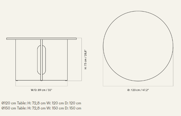 Подобно великолепному монументу, андрогинный обеденный стол сочетает в себе натуральные материал. Доступны в двух размерах из промасленного или окрашенного в темный цвет дуба или Ø120 с деревянным основанием и столешницей из мрамора/камня, что позволяет создавать индивидуальные сочетания контрастных текстур и отделки.