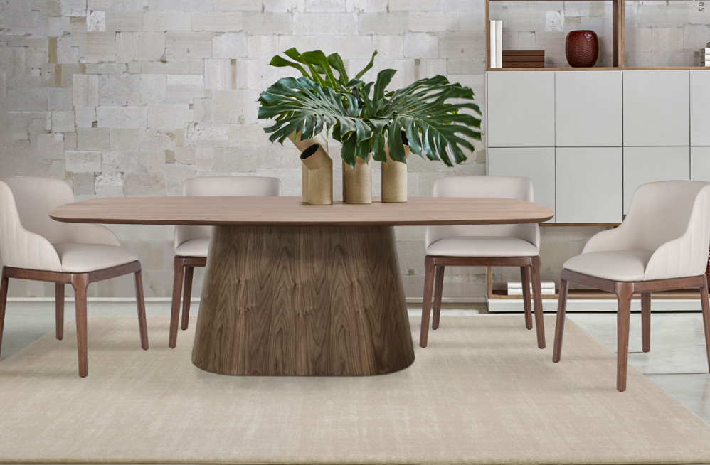 Каркас из МДФ, отделка шпоном из черного ореха / ясеня; столешница толщиной 25 мм. Размеры 210х110х76 см