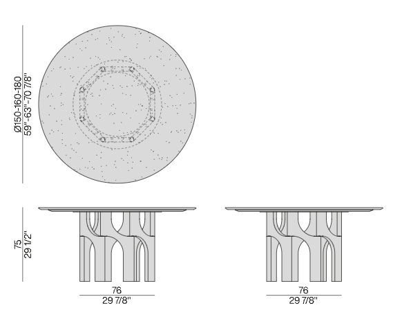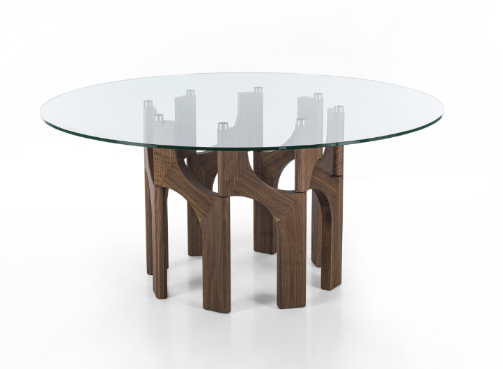 Обеденный стол Augusto представляет собой настоящее скульптурное произведение, сочетающее в себе мастерство исполнения и творческие инновации. Главным героем продукта является модульное основание из массива ореха каналетта, состоящее из взаимосвязанных элементов, которые позволяют Agusto адаптироваться к различным требованиям дизайна интерьера, а также обеспечивают стабильную и долговечную конструкцию. Столешница доступна во всех вариантах коллекции Porada – crystal, essence, marble и Rock – и в различных вариантах отделки, что гарантирует заказчику высочайший уровень индивидуализации изделия в соответствии с требованиями конкретного стиля. С концептуальной точки зрения дизайн стола уходит корнями в историю римской культуры и вдохновлен одним из самых знаковых архитектурных элементов — аркой.
