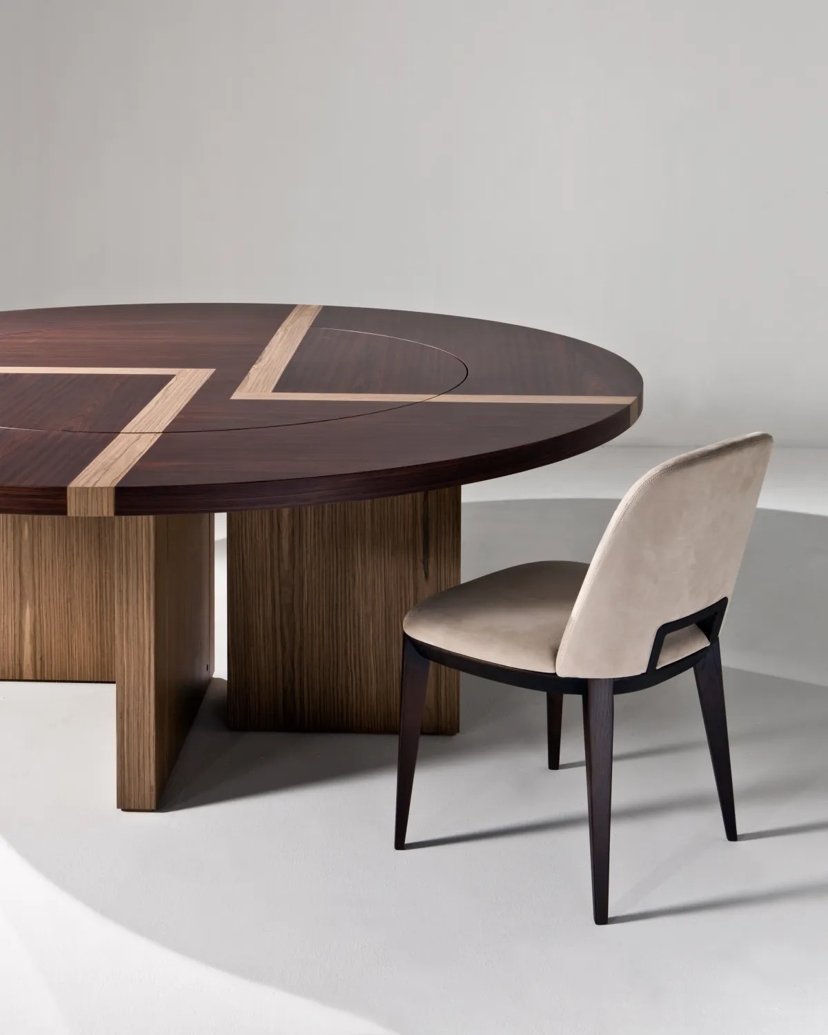 BD 07 – это стол с основанием из дерева и столешницей с инкрустацией деревом по дереву.