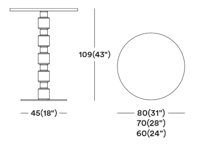Стол имеет размер 80 см (вероятно диаметр или ширина) и высоту 110 см.