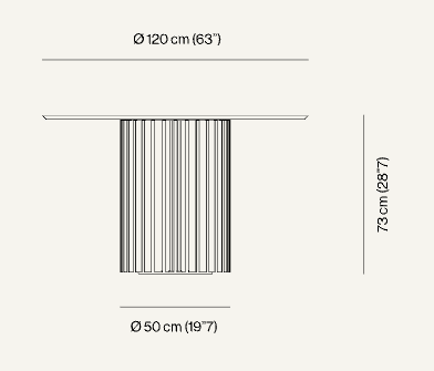 Контраст между округлостью режущего стола и отверстиями в радиальном расположении планок усиливает осязаемость материала, из которого он изготовлен. Сочетание массивности дерева и воздушности света создается отражениями, создаваемыми латунными Т-образными вставками, которые украшают центральное основание из орехового дерева Canaletto, на которое опирается мраморная столешница.