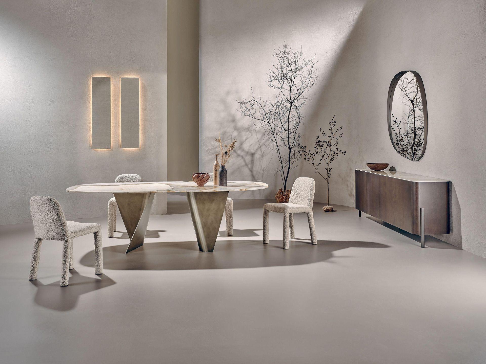 Blow завораживает с первого взгляда: его плавные линии создают эффект движения, словно стол парит в воздухе. Игра света и тени подчеркивает глубину форм, придавая мебели сценическое присутствие. Дизайнеры Naturedesign вдохновились природной грацией, объединив ее с современной эстетикой. Стол идеально впишется как в минималистичные, так и в классические интерьеры, становясь их смысловым центром.