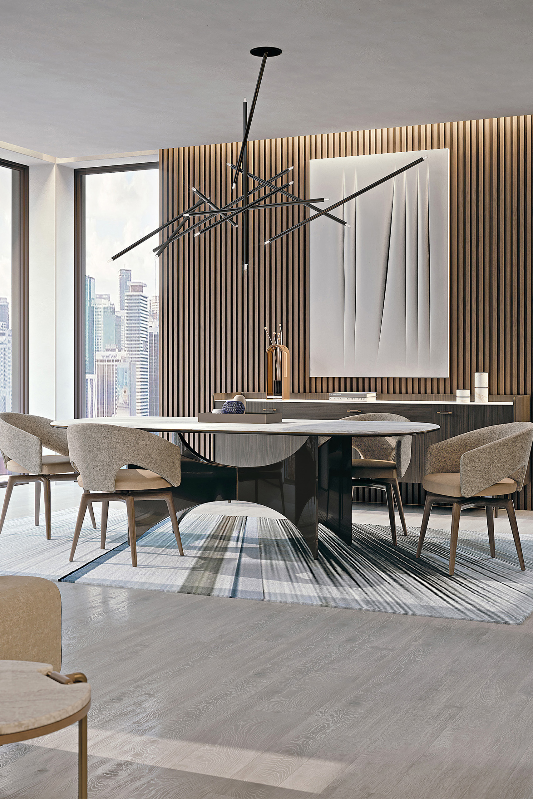 Итальянский обеденный стол Blues rectangular от фабрики TURRI — воплощение элегантности и функциональности. Основание в форме крыльев не только придает столу визуальную легкость, но и обеспечивает устойчивость. Металлические детали и закругленные линии столешницы подчеркивают изысканный дизайн.