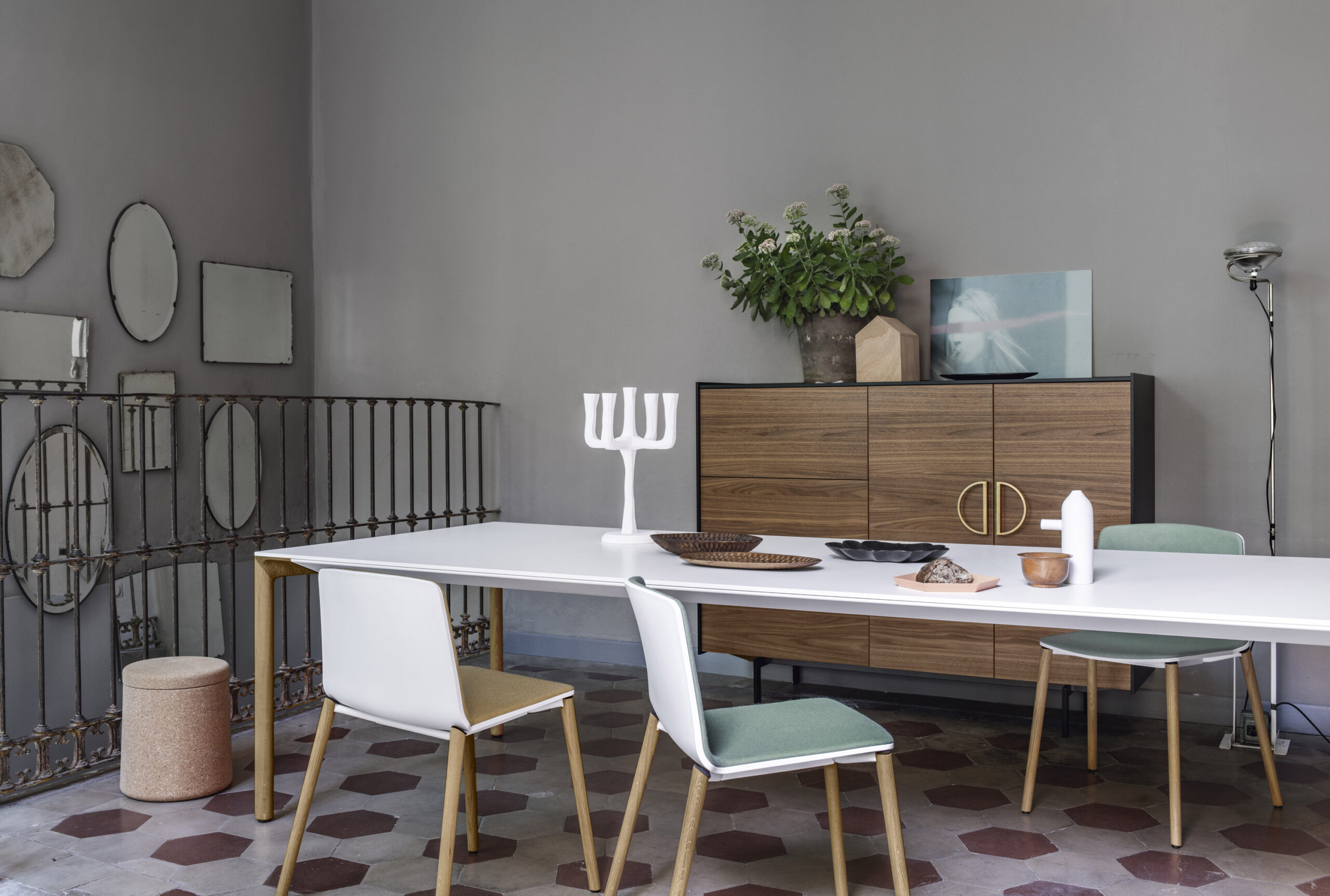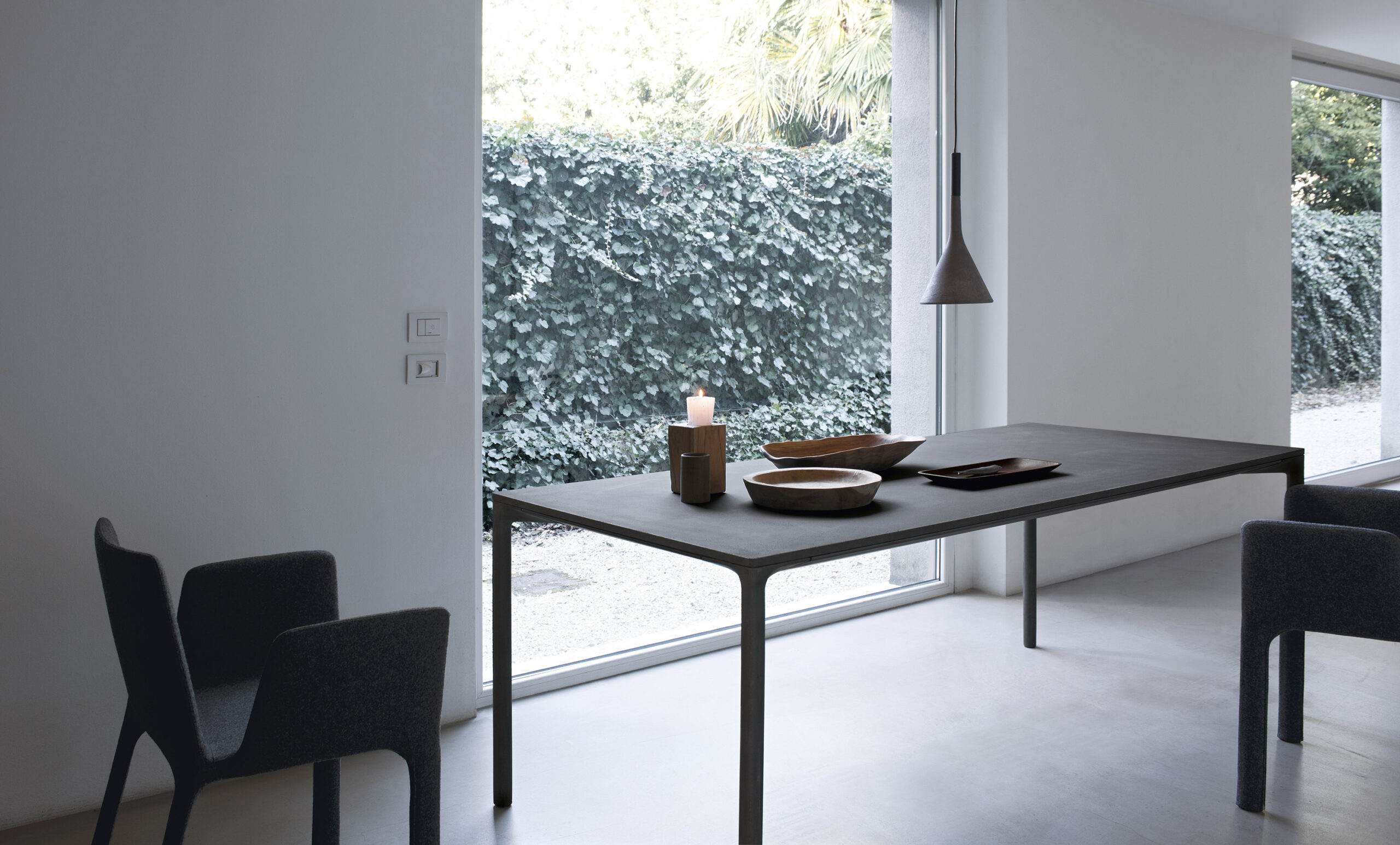 Доступен в двух вариантах: оригинальная цементная столешница (в светлом и темном оттенках) или современная версия с белоснежным ламинатом или покрытием Fenix-NTM®, дополненная деревянными ножками с металлическим сердечником. Идеален для обеденных зон и рабочих пространств, подчеркивая статус итальянского дизайна.