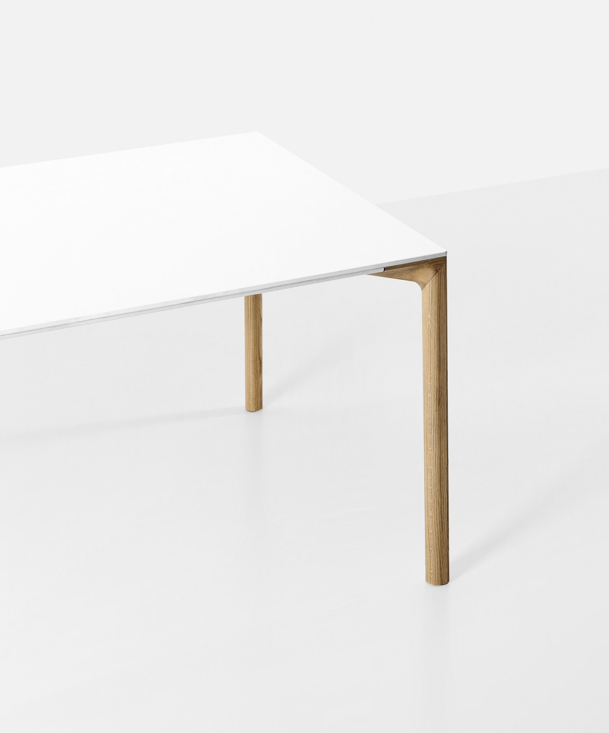 Boiacca — это синтез индустриального стиля и современной эстетики. Его первоначальная версия с цементной столешницей, доступная в светлом и темном оттенках, создает эффект монолитности, дополненной теплотой деревянных ножек. В более поздних модификациях столешница выполнена из белоснежного ламината или инновационного материала Fenix-NTM®, который устойчив к царапинам и сохраняет безупречный вид годами. Металлический сердечник внутри ножек добавляет прочности, сохраняя визуальную легкость.