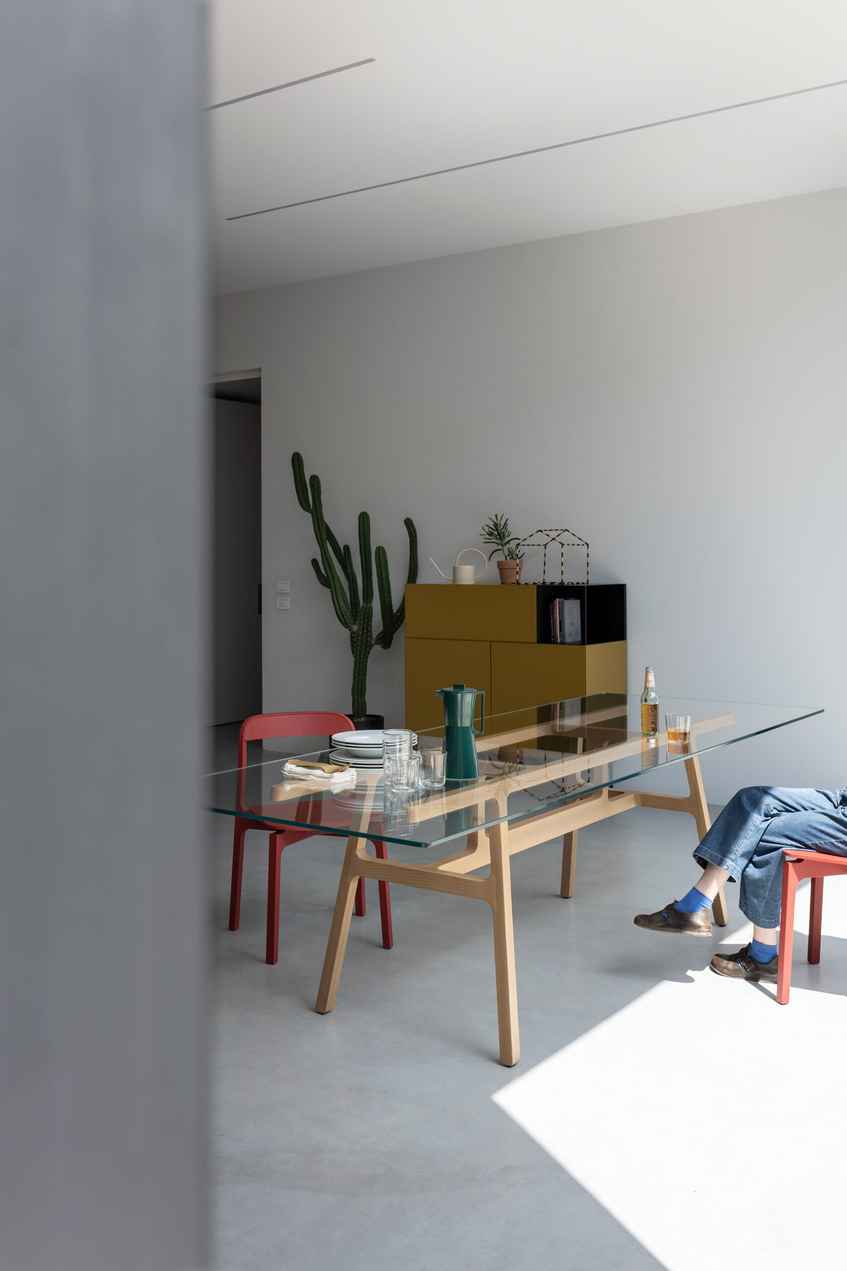 Авторская работа японского дизайнера Кенсаку Оширо (Kensaku Oshiro) отражает философию минимализма и практичности. Стол Bottega напоминает деревянный мольберт мастера — его лаконичные линии и визуальная легкость создают ощущение воздушности, несмотря на монументальность конструкции. Каждая деталь продумана до мелочей, что делает этот стол идеальным как для обеденной зоны, так и для рабочего кабинета.