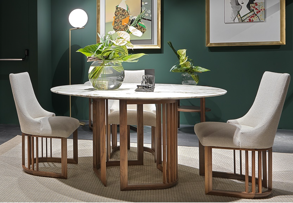 Круглый стол из ореха Каналетто с полностью мраморной столешницей