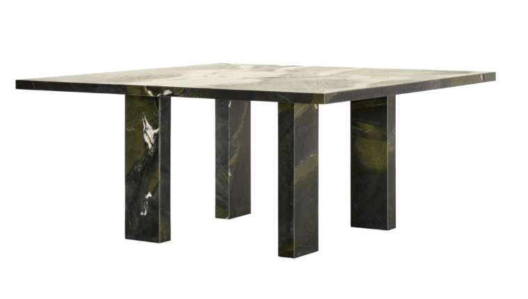 Простой и монументальный стол, установленный по часовой стрелке, вызывает неожиданное ощущение легкости в ножках, которые, кажется, почти следуют одна за другой, танцуя в разных ритмах, как будто они являются метафорой естественных повседневных движений.