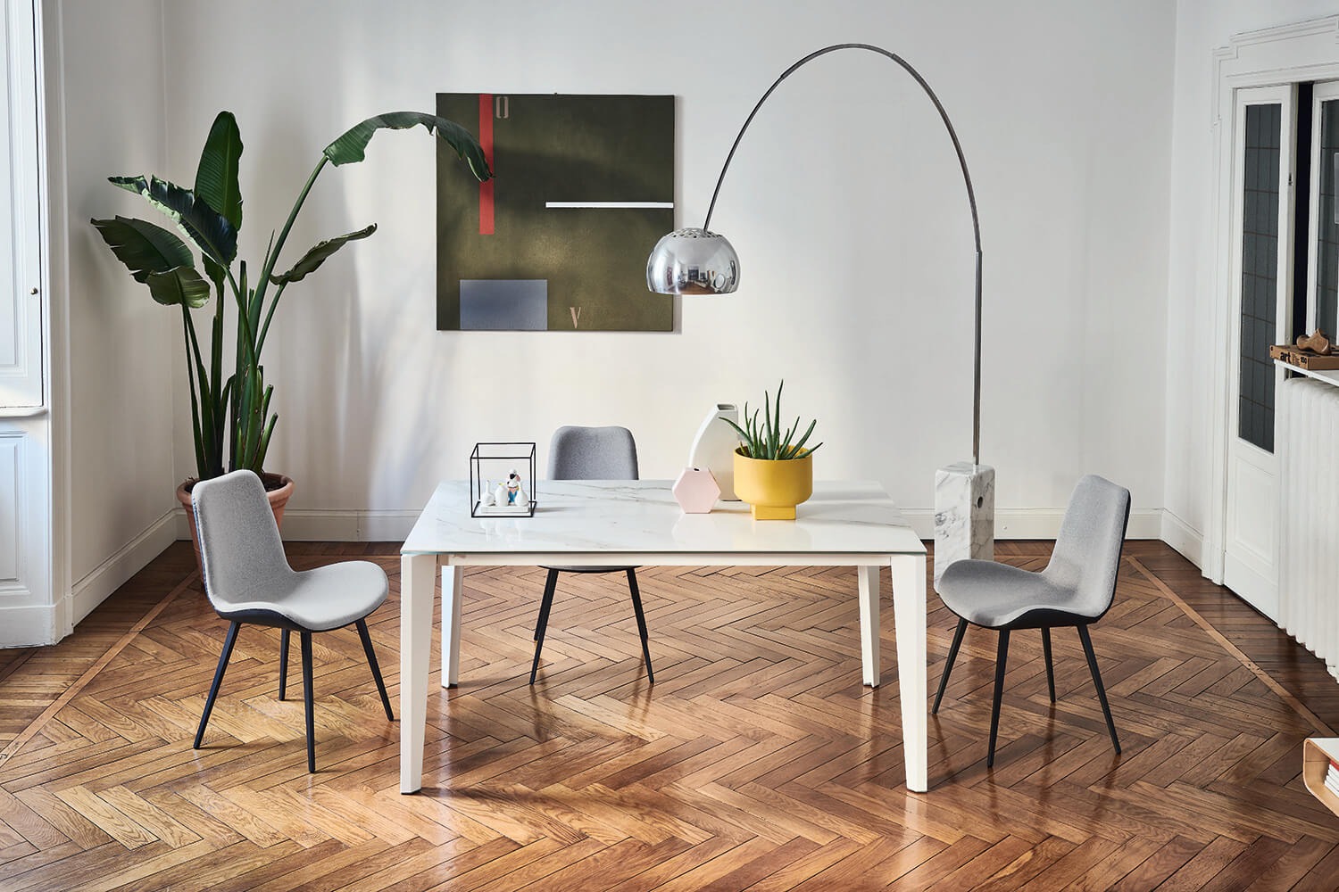 Diamante — это современный стол, доступный как в стационарном, так и в выдвижном исполнении. Основание выполнено из окрашенного металла различных цветов. Столешница может быть изготовлена по индивидуальному заказу из шпонированного дерева, хрусталекерамики, стекла, лакированного МДФ или HPL. Универсальное и функциональное решение для обеденных и жилых помещений.