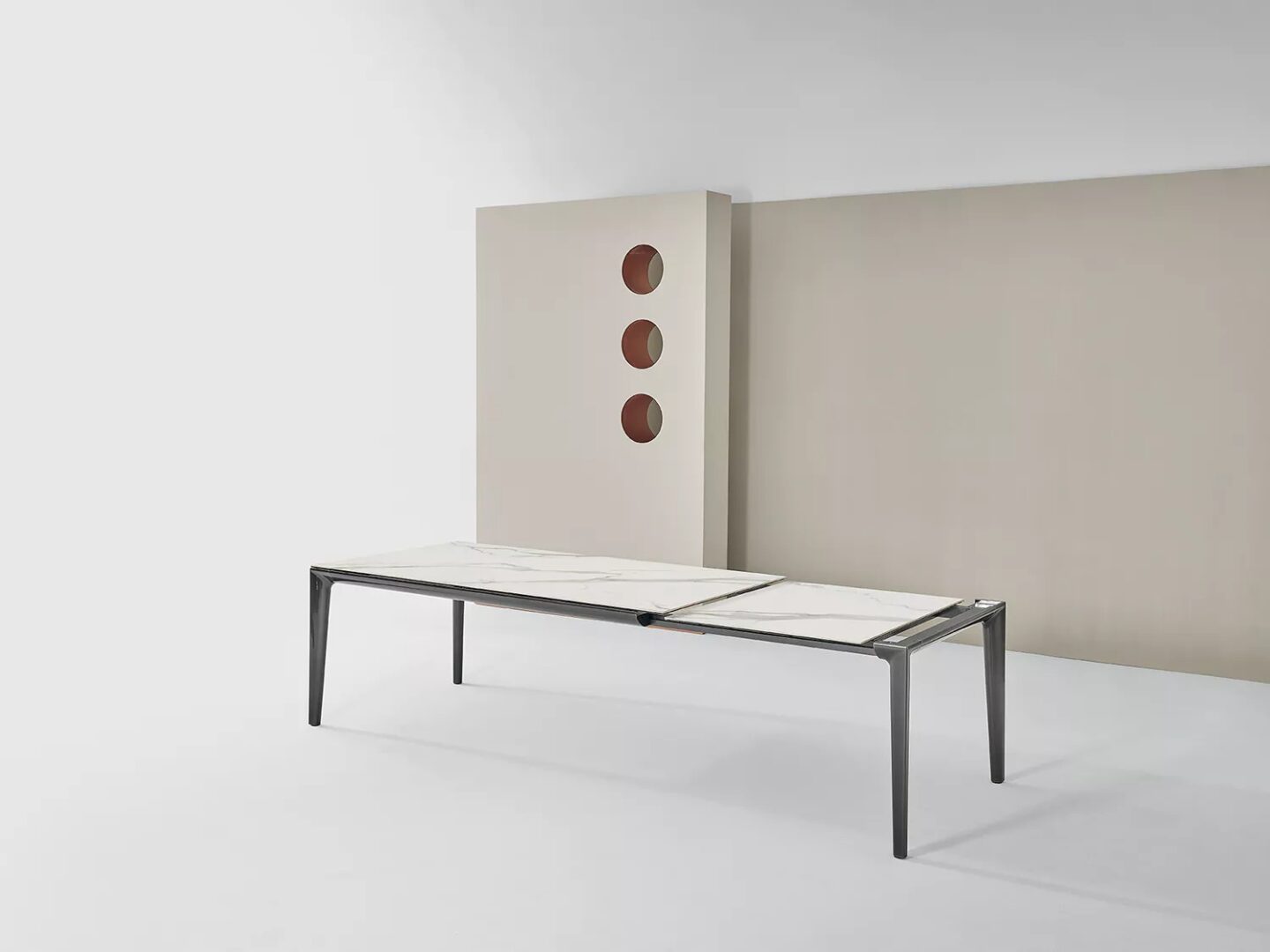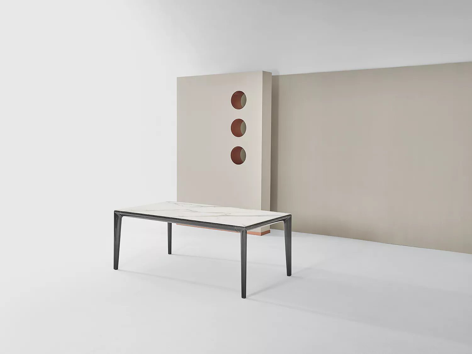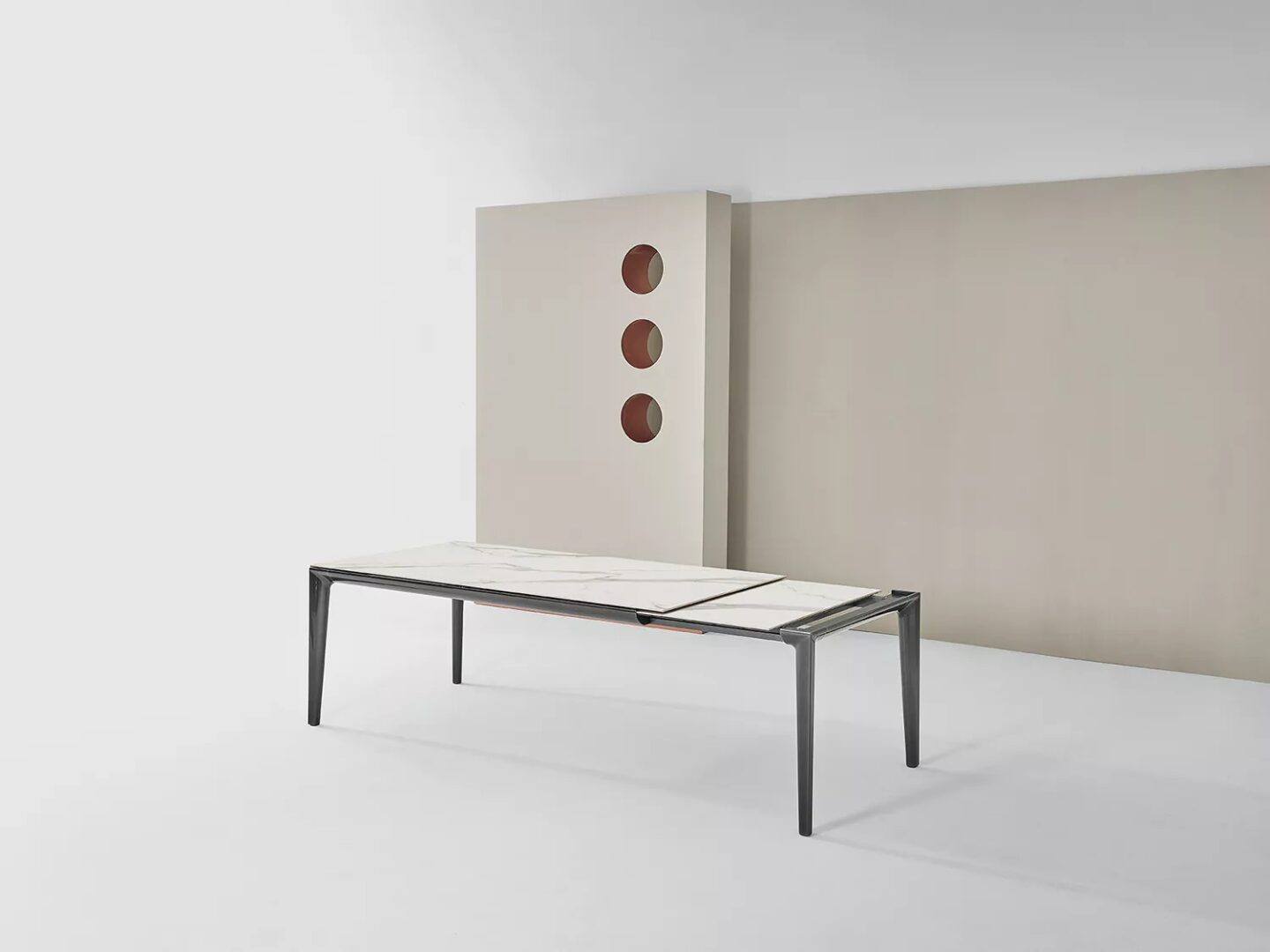 Нераскладной стол со структурой из лакированной стали, столешницей из стекла и стекла, устойчивого к царапинам, СуперКерамики и СуперМрамора.