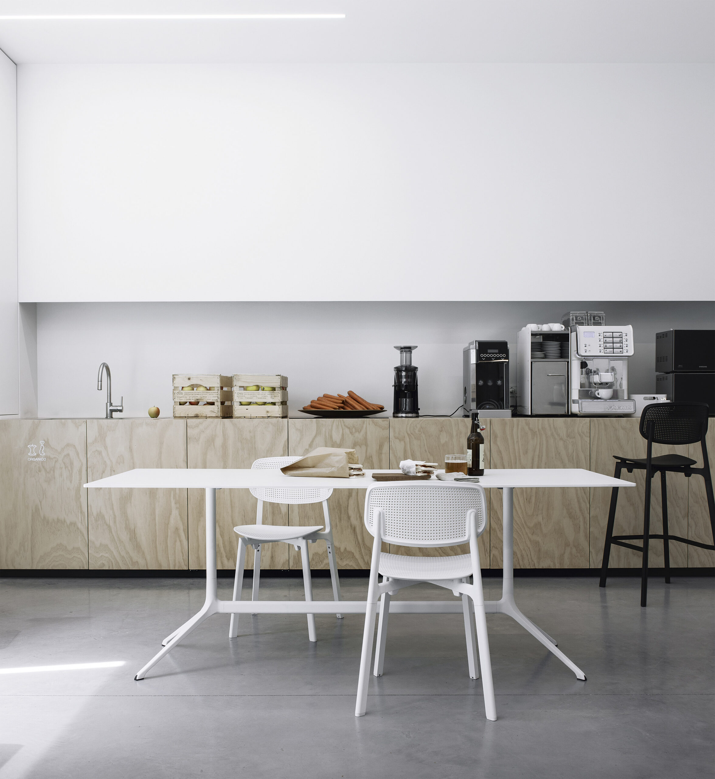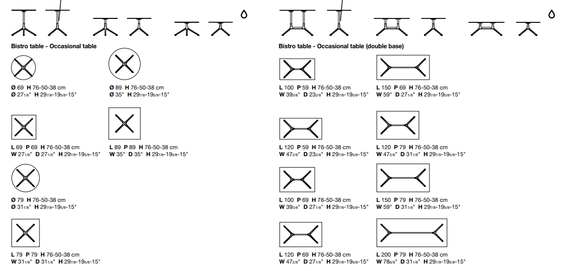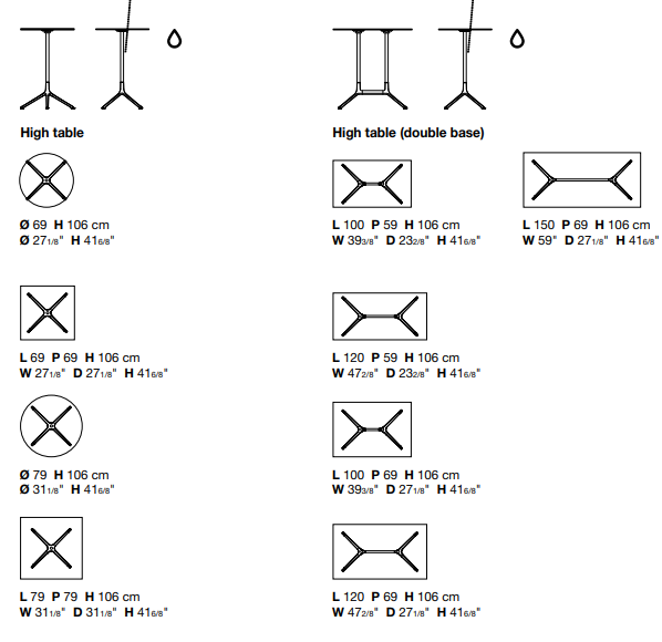 Серия столов Elephant, появившаяся в результате эволюции основания вращающегося стула на козлах, напоминает одноименную коллекцию стульев. Постепенно идея была расширена и теперь включает в себя множество различных вариантов — от столов для бистро до высоких столов с одинарным или двойным основанием. Рама из полированного или окрашенного литого под давлением алюминия поддерживает круглую или прямоугольную столешницу, доступную в различных цветах или отделанную камнем (только для версии журнального столика). Универсальные столы серии Elephant, доступные как в стационарном, так и в складном исполнении, идеально подходят для самых разных помещений, включая кухню, прихожую, гостиную и офис.
