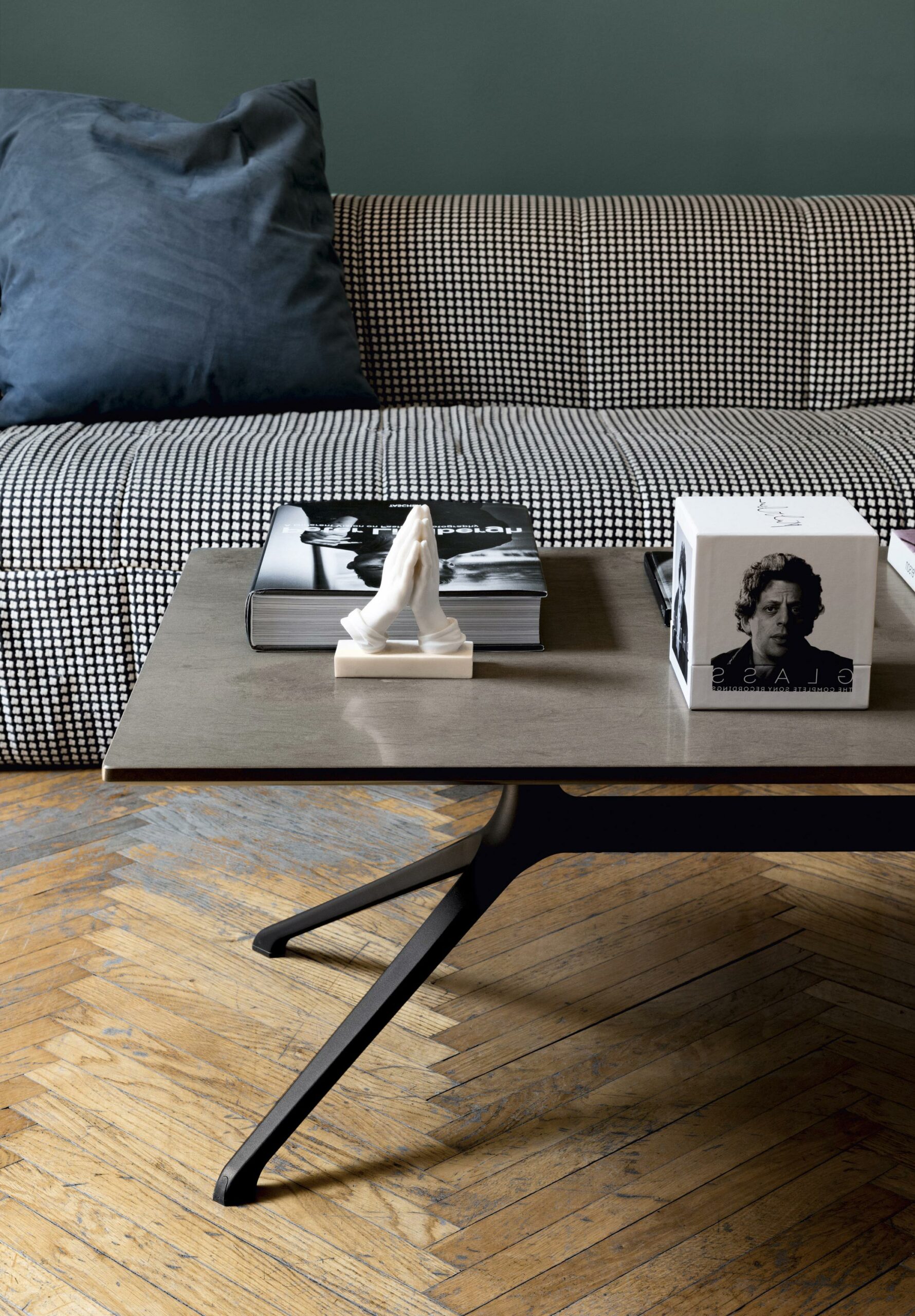 Рама из литого алюминия (полированного или окрашенного) сочетается с круглой или прямоугольной столешницей. Доступны варианты с цветными поверхностями или каменной отделкой (для журнальных столиков). Столы выпускаются в стационарном и складном исполнении, что делает их универсальными для гостиной, кухни, офиса или прихожей.