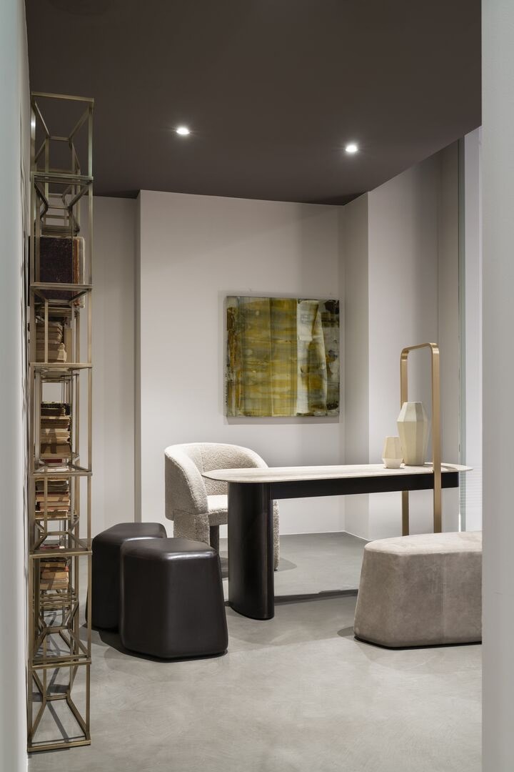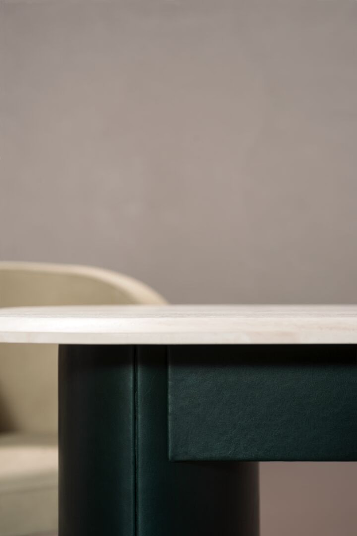 В духе лаконичного скульптурного дизайна, которым славится Федерико Пери, перед нами предстает письменный стол Ellipse Light Up со столешницей из натурального камня. Модель, наделенная уникальным эклектичным характером, великолепно смотрится за счет сочетания форм, пропорций и материалов. Столешница асимметричной овальной формы со скошенными краями выразительно преподносит естественный, испещренный прожилками рисунок гранита и мрамора. Ее дополняют обтянутый кожей каркас и металлические ножки строгих очертаний со встроенной светодиодной подсветкой. Функциональные детали ящиков с ручками из вороненого или матированного металла и встроенное освещение делают этот письменный стол не только выразительным и статусным предметом мебели, но и рациональной принадлежностью для учебы и работы.