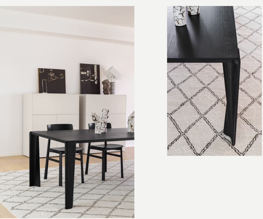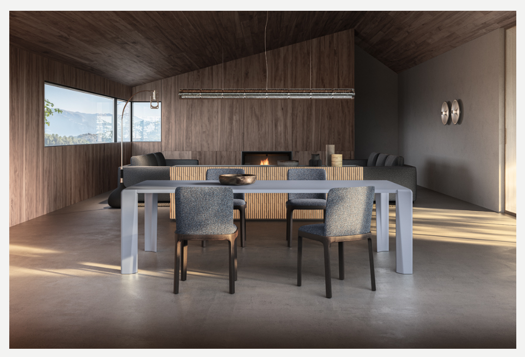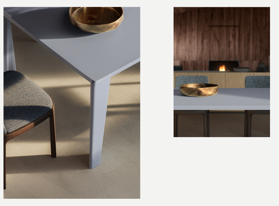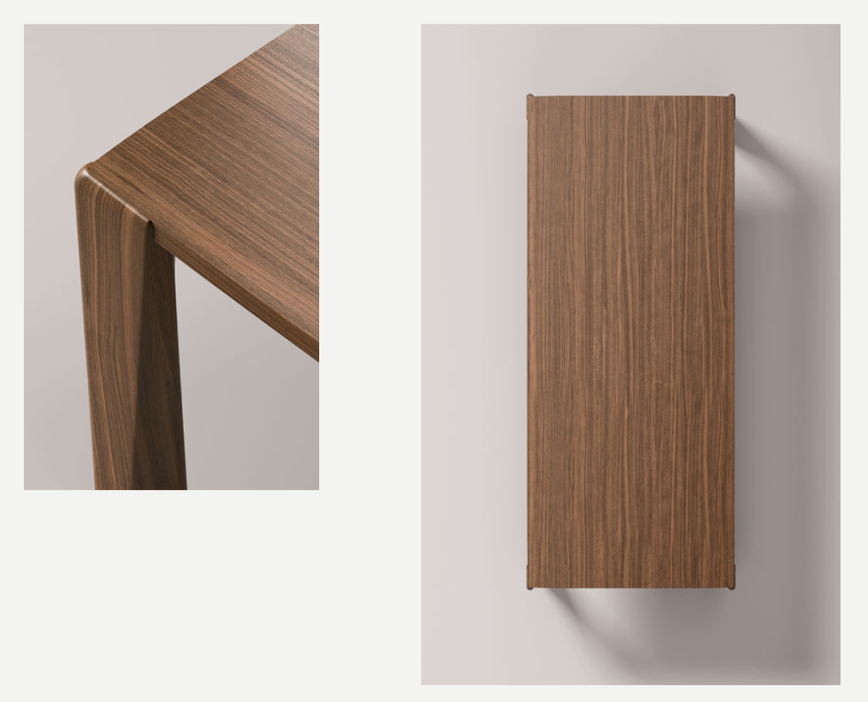 Динамизм и напряженность создают ощущение гармоничного соучастия. Стол Enea up имеет характерные геометрические формы, которые подчеркивают как стиль, так и технические качества материала. Ножки крепятся к столешнице, плавно огибая края, что играет ключевую роль. Изготовленные из цельного куска обработанного и профилированного дерева, они создают плавное, сочлененное движение в пространстве. В результате получается уникальный культовый дизайн, усиленный деревянными прожилками.