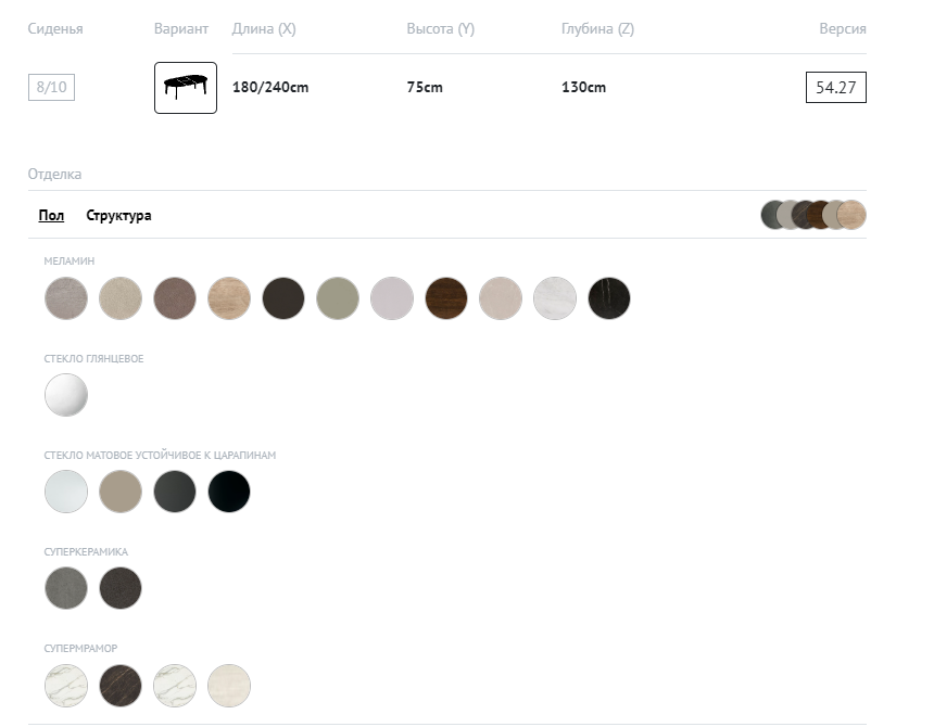 Неподвижный прямоугольный стол, выдвижной прямоугольный стол, фиксированный квадратный стол, выдвижной квадратный стол, фиксированный овальный стол, выдвижной овальный стол с конструкцией из лакированной стали.