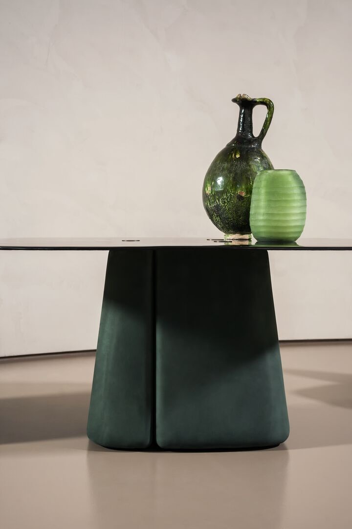 Коллекция Fany изумительной красоты появилась на свет благодаря гению французского дизайнера Кристофа Делькура, который смешивает различные стили и идеи в стремлении найти гармонию в гибком сочетании таких материалов, как мрамор, кожа, плавленое стекло и ценные металлы. В этих столах, столиках и консолях, словно в навеянных миром природы скульптурах, соединяются воедино выполненная вручную столешница из плавленого стекла (с деталями из нейзильбера, матированной или вороненой латуни) и основание, в котором ножки из мрамора Travertino White чередуются с ножками, обтянутыми кожей, превращая присущую материи неоднородность в средоточие ее красоты. В итоге неровности, обусловленные естественным происхождением камня и обработкой стекла, делают каждое изделие неповторимым, настоящим произведением искусства, способным очаровывать и изумлять.