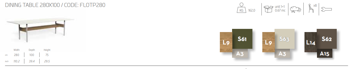 Итальянский стол Flow Dining table 280×100 от Talenti