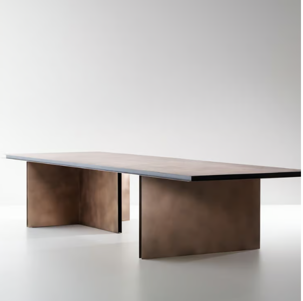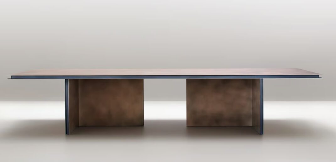 Чистые, четкие линии этого стола состоят из перпендикулярных плоскостей из равноудаленных металлических листов, которые подчеркивают форму фолианта, создавая интригующую игру теней в отличие от света, отражающегося от горизонтальной поверхности. В этой увеличенной версии стола продуманно спроектировано основание Folio с двумя вертикальными плоскостями, обеспечивающими устойчивость и поддержку, а также достаточное пространство для ног во время сидения.