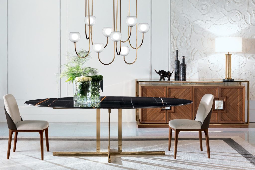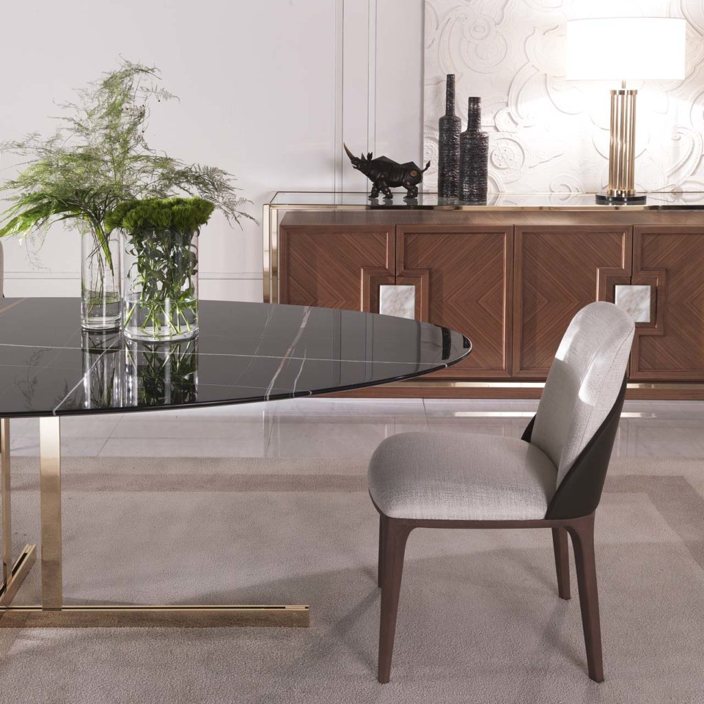 GREGORIO-изысканный мраморный обеденный стол с металлической рамой и золотой отделкой. Превосходная элегантность линий и изысканность материалов делают Moderna Marble GREGORIO идеальным продуктом, который придаст вашему интерьеру ощущение роскоши.
