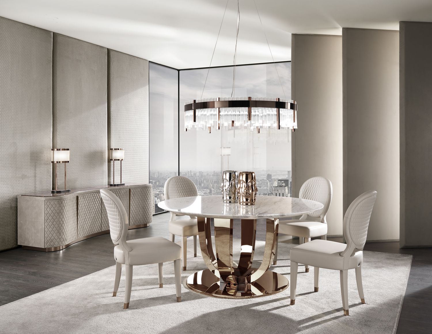 Итальянский стол Hermes Round от фабрики DV Home — элегантное решение для обеденной зоны. Произведён в Италии, что гарантирует безупречное качество материалов и отделки. Круглая форма стола создаёт уютную атмосферу, а продуманный дизайн делает его универсальным для классических и современных интерьеров.