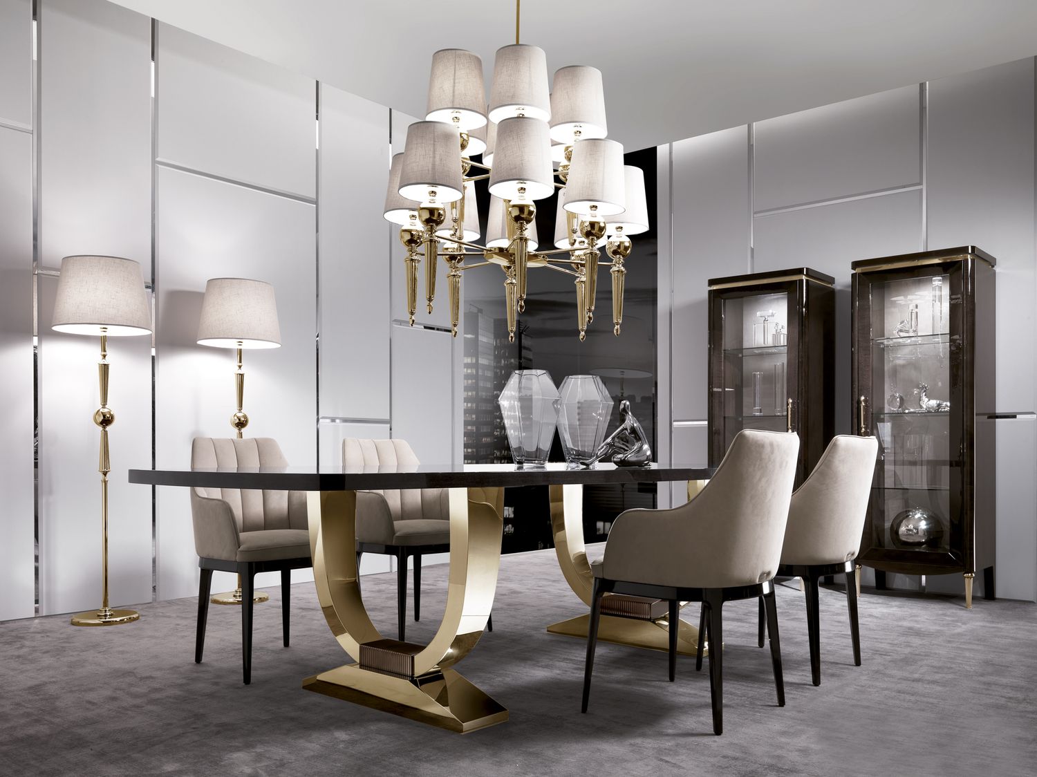 Стол Hermes Suite воплощает в себе лучшие традиции итальянского дизайна, сочетая классическую утонченность с современными тенденциями. Его формы — это симфония чистых линий и благородных пропорций, создающая ощущение легкости и одновременно монументальности. Такой стол идеально впишется в просторную столовую, кабинет или гостиную, становясь главным акцентом пространства.