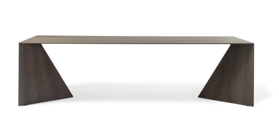 Стол изготовлен из многослойной древесины и отделки поверхности в различных эссенциях. Основание, в форме гиперболы, расположено на тонком профиле, который, изменяясь по периметру, превращается в плоскость. Этот проект рождается из идеального баланса между ремесленным мастерством Emmemobili и новейшими технологиями в деревообработке. Минимальный в дизайне, но не в содержании, этот стол является идеальным passe-partout для назначения и использования, выражая элегантность в простоте его дизайна.