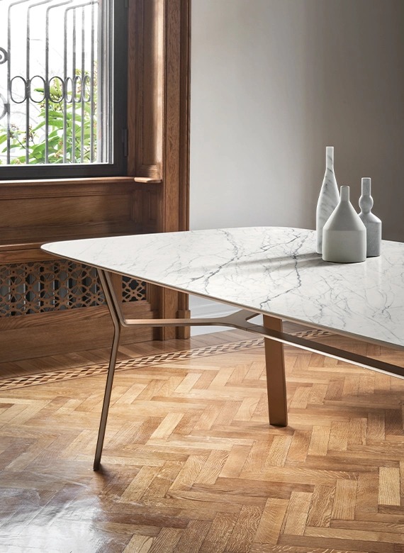 Iron-это предложение стационарных столов с стальной подставкой лазерной формы с лучевыми краями, доступных в различных покрытиях окрашенного металла, таких как коричневый, свинец, бронза, латунь, медь. Идеальное решение, романтичное и вневременное, которое украшает, подчеркивая красоту интерьера.
