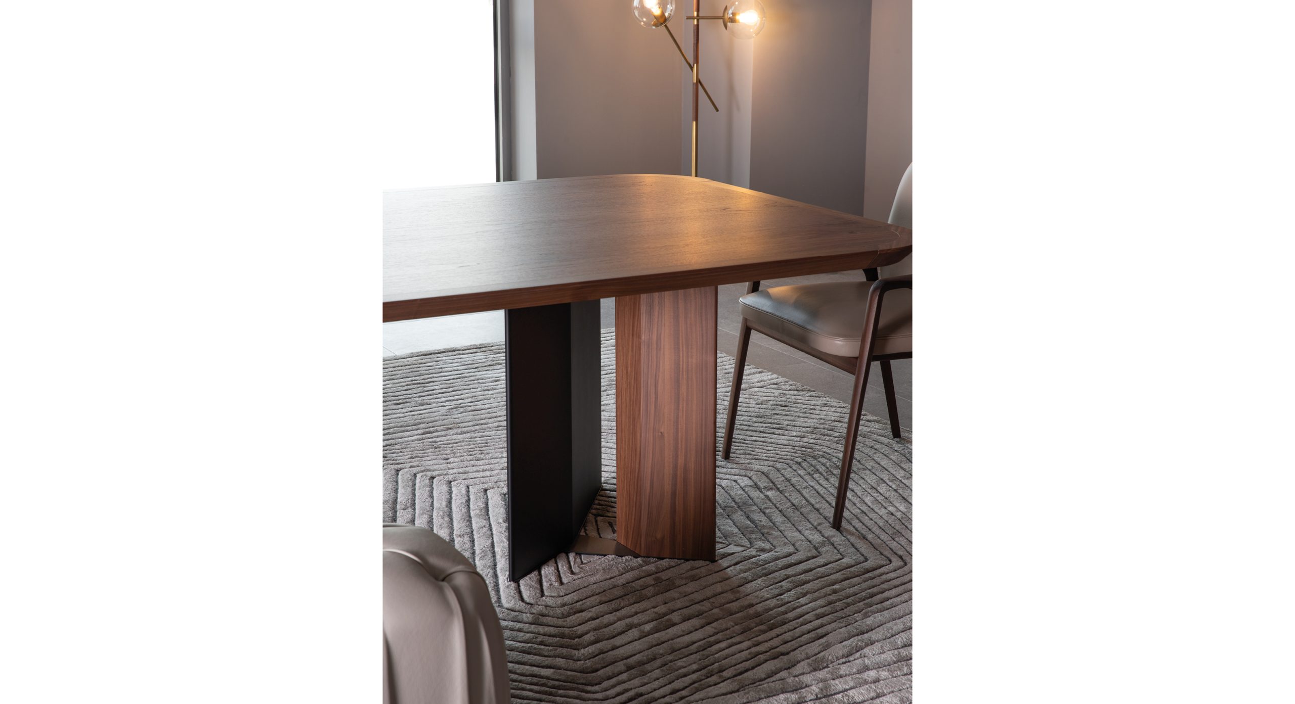 Структура: Основание с металлическими торцами в различных вариантах отделки из фанеры, обтянутой кожей различных сортов Ulivi Salotti и американского ореха. Верхний: Столешница Ulivi Salotti доступна в различных категориях мрамора или в деревянном исполнении.