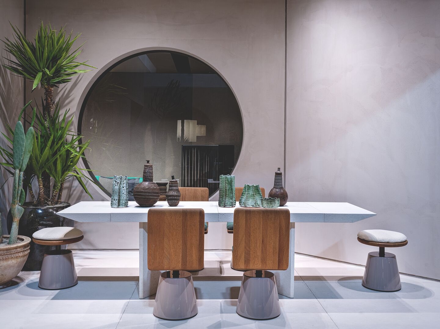 Стол из известняка для открытых площадок Judd, истинный образец дизайна и элегантности, впечатляющий и невероятно выразительный скульптурный шедевр, создан компанией Baxter в стремлении привнести изысканность в пространство Outdoor, в оформление сада, патио и террасы. Известняковый камень Salar Stone Hidro, богатый оттенками, отметинами и нюансами, обеспечивает исключительную устойчивость к износу и воздействию природных факторов, соединяя в себе удивительную красоту природного материала с предельно эксклюзивным дизайном. Стол Judd лаконичного силуэта с его клинообразными формами, четкость которых подчеркивает светлый оттенок камня, сезон за сезоном будет сопровождать моменты общения, неизменно сохраняя свое неподвластное времени очарование.