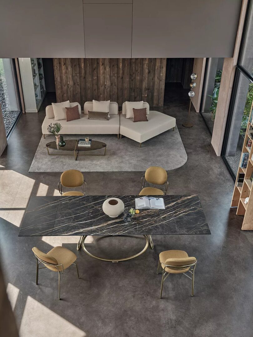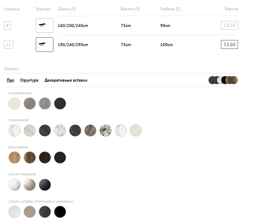 Стол раскладной и нераскладной, бочкообразная столешница и прямоугольная структура из лакированной стали. Столешница из шпона, шпона с краями из массива, массива дерева, стекла, стекла, устойчивого к царапинам, СуперКерамики , СуперМрамора.