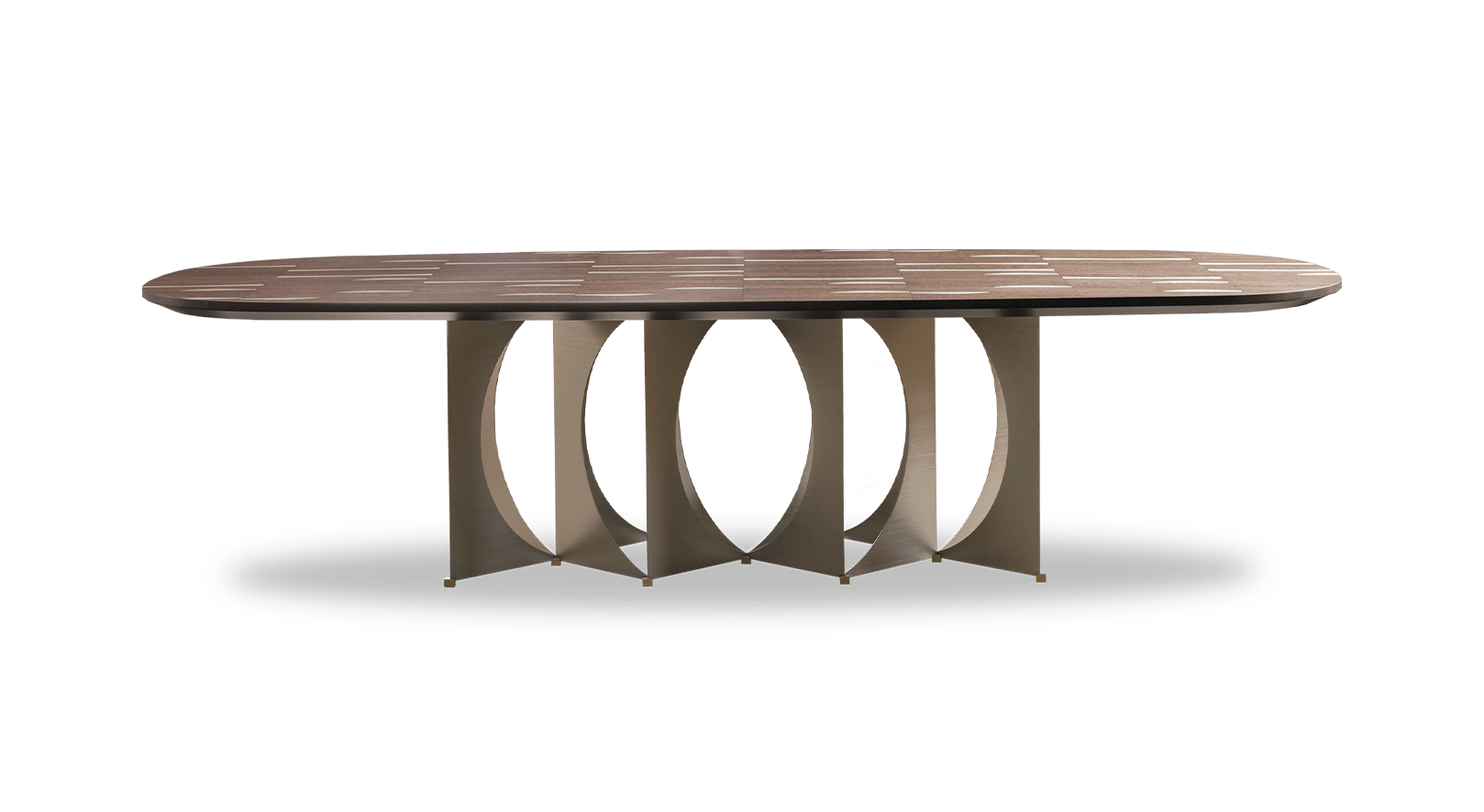 Ритмичная последовательность арок, в которой сочетаются элементы архитектуры и дизайна. Воздушная отделка рамы выполнена из матового металла, визуально контрастирующего с матовыми вставками из натуральной латуни.