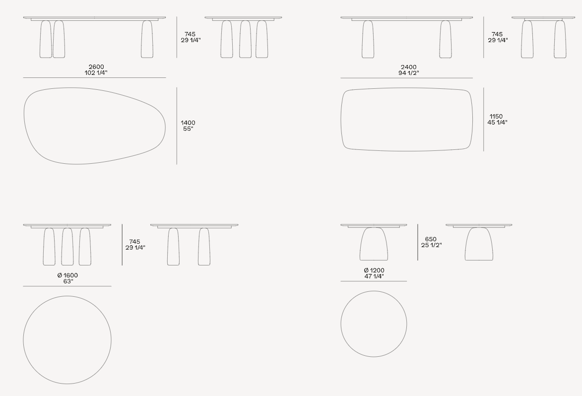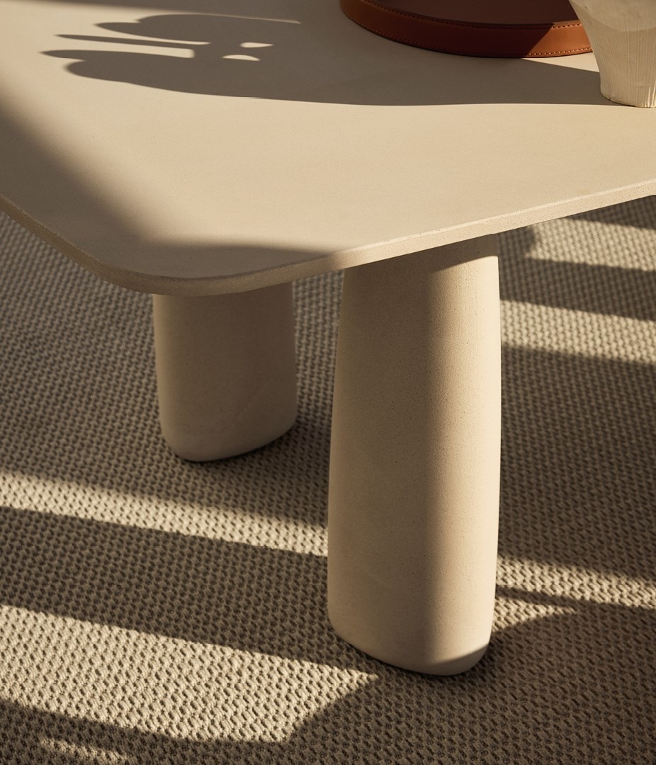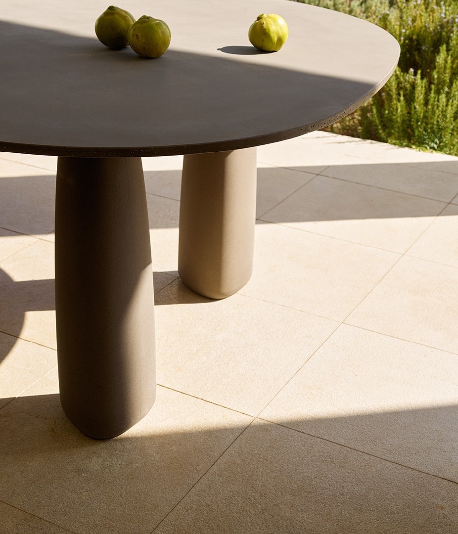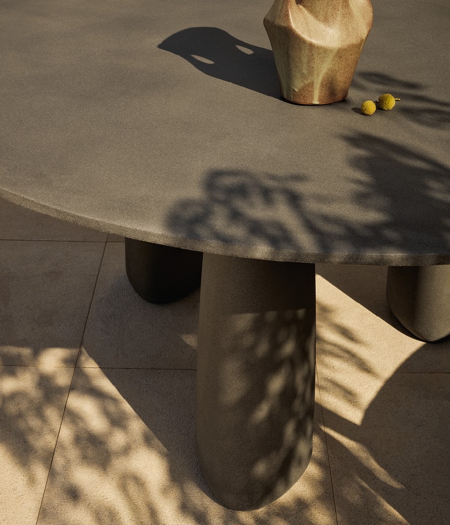 В основе коллекции Monolith лежит неподвластный времени и успокаивающий вид дольмена, связывающий ее с окружающей природой. Тонкая столешница из материала Cementoskin® или базальтового камня контрастирует с монументальной и величественной эстетикой основания, а ее закругленные края смягчают визуальное восприятие стола. Коллекция Monolith, выступая полноценной системой, представлена в различных размерах и с различными формами столешницы.