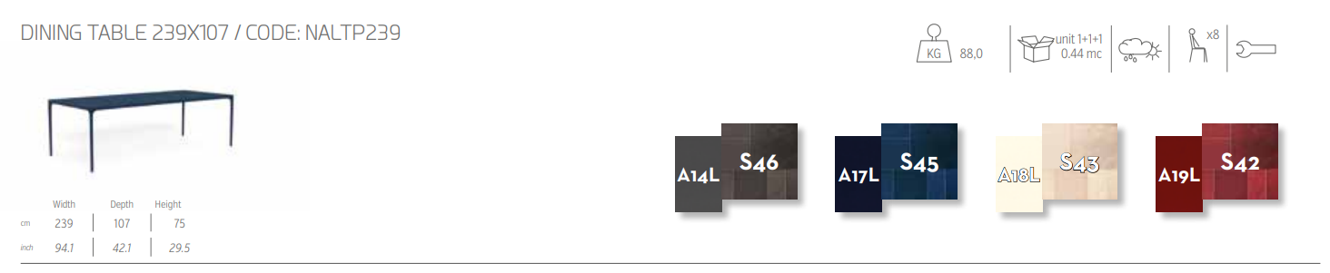 Итальянский стол Nalu dining table 239×107 от Talenti
