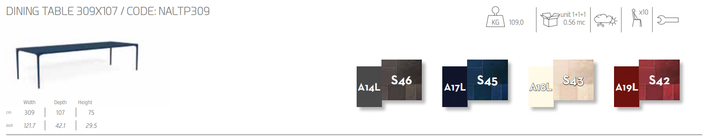 Итальянский стол Nalu dining table 309×107 от Talenti