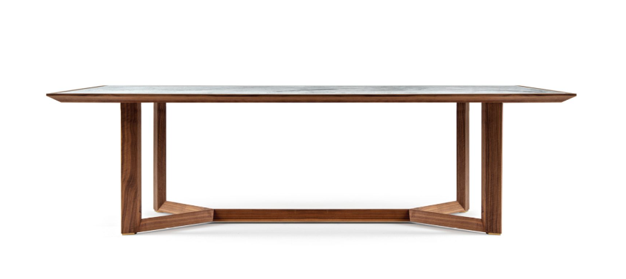 Основная конструкция: массив американского ореха или других пород дерева из коллекции Ulivi Salotti woods. Основание и ножки из массива американского ореха. Столешница: отборное дерево, стекло, мрамор из каталогов Ulivi.