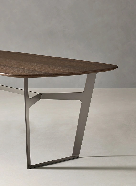 Ножки для стола Obi с динамическим дизайном выполнены из окрашенного металла и могут поддерживать различные столешницы, как овальные, так и прямоугольные, доступные в материальной, эссенции, стекле или различной керамической отделке: каждая столешница имеет разные детали в обработке, в зависимости от варианта.
