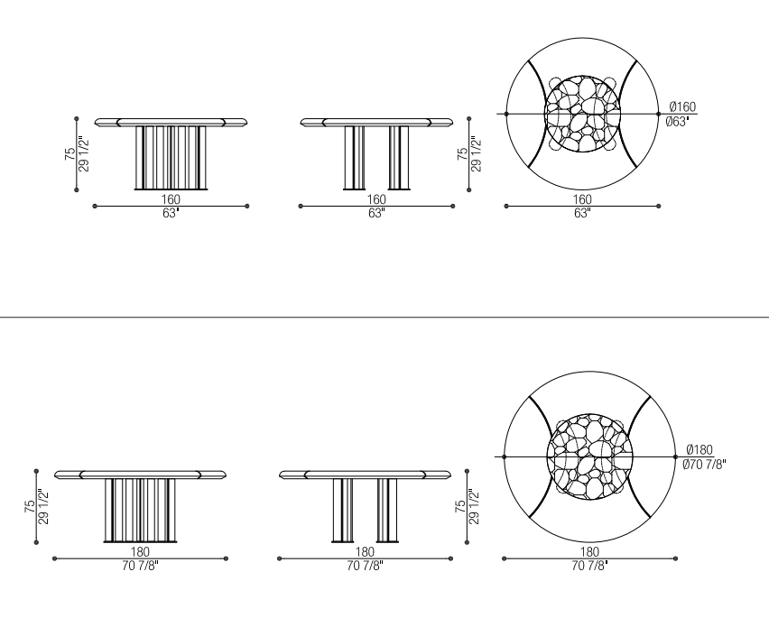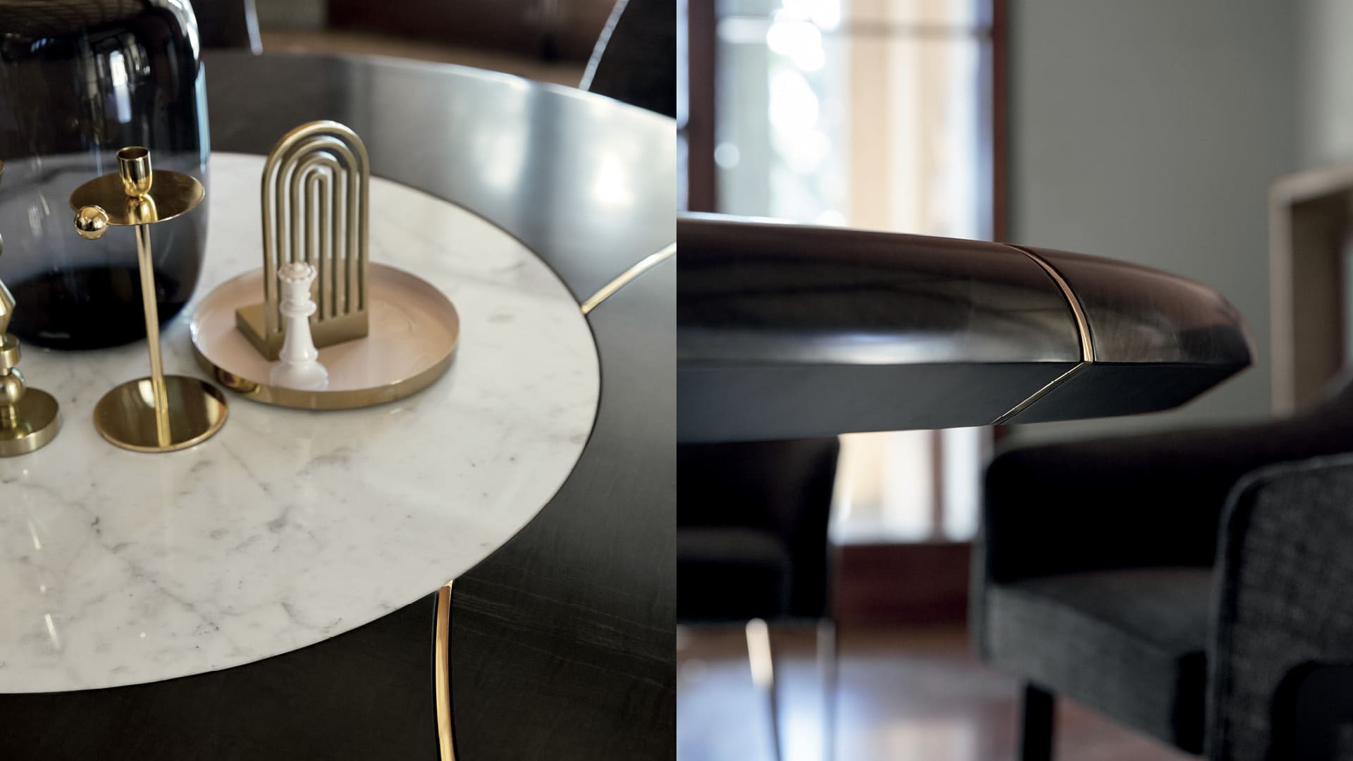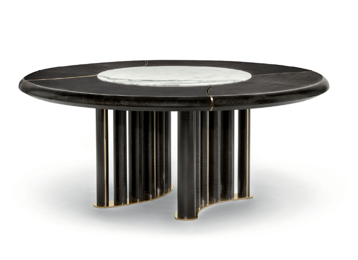 Круглый стол Oliver с металлическими вставками изготовлен из высококачественных материалов и богат деталями.