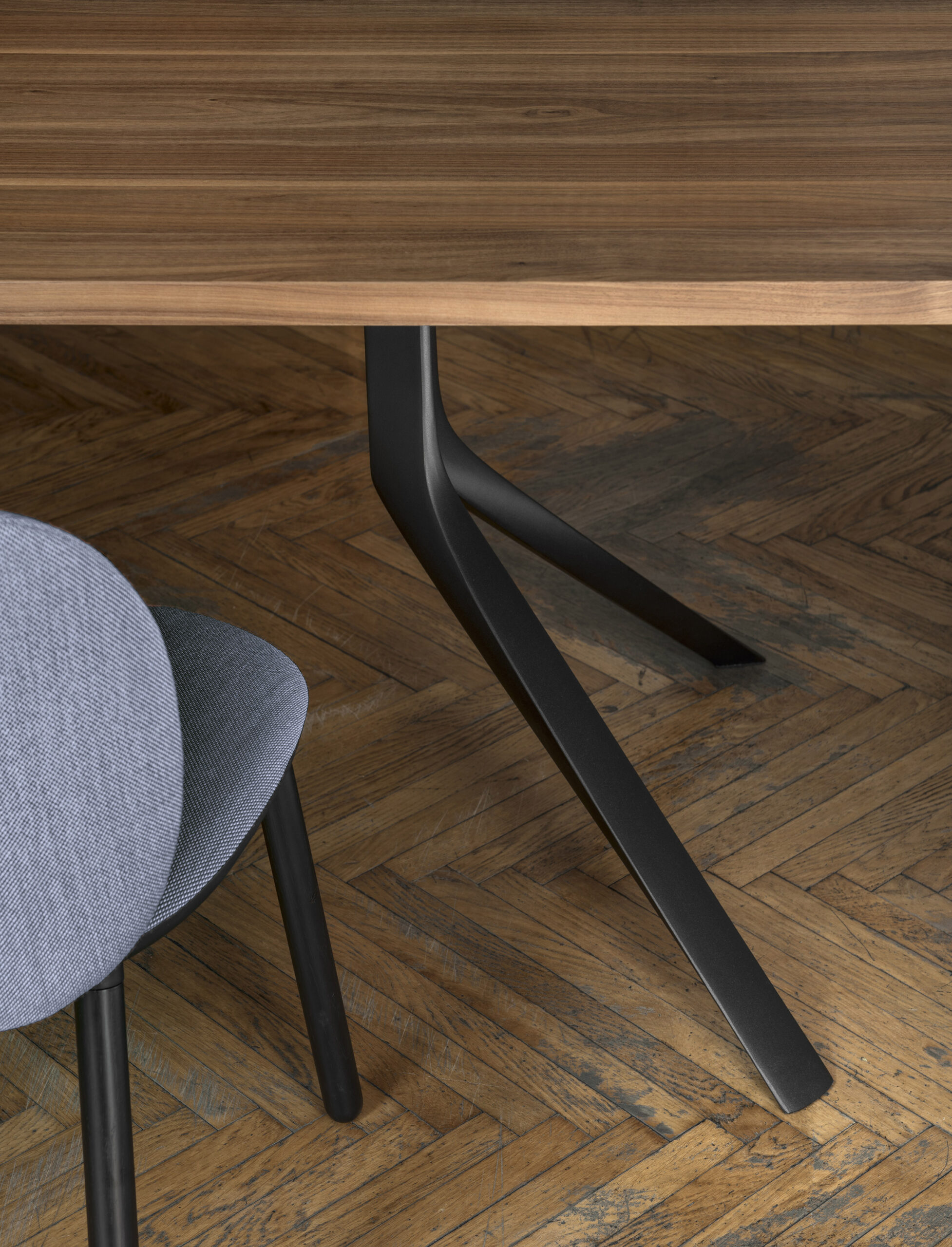 Фабрика KRISTALIA использует только премиальные материалы, гарантирующие безупречное качество и долговечность мебели. Основание стола выполнено из литого алюминия с матовым или порошковым покрытием, что обеспечивает прочность и устойчивость. Столешница толщиной 50 мм может быть изготовлена из: