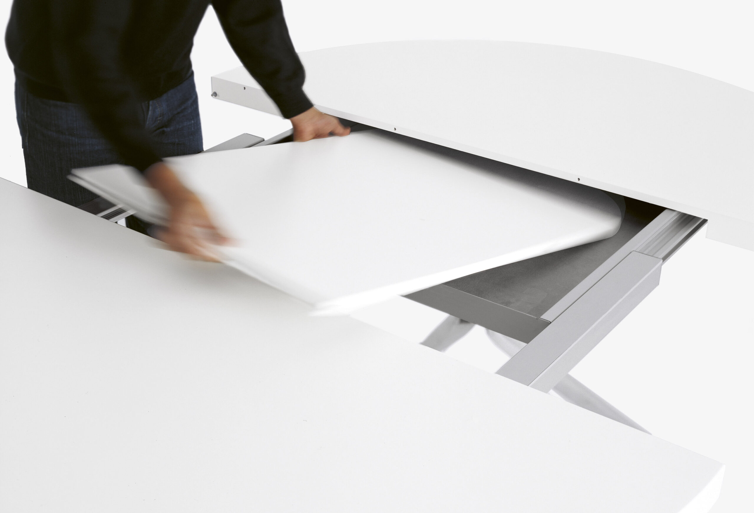 Итальянский стол Oops от фабрики KRISTALIA – образец современного дизайна и функциональности. Разработанный Моникой Граффео, стол сочетает элегантность с инновационными решениями: алюминиевое основание, лакированную столешницу толщиной 50 мм и возможность трансформации формы (круглая, эллипсоидальная).