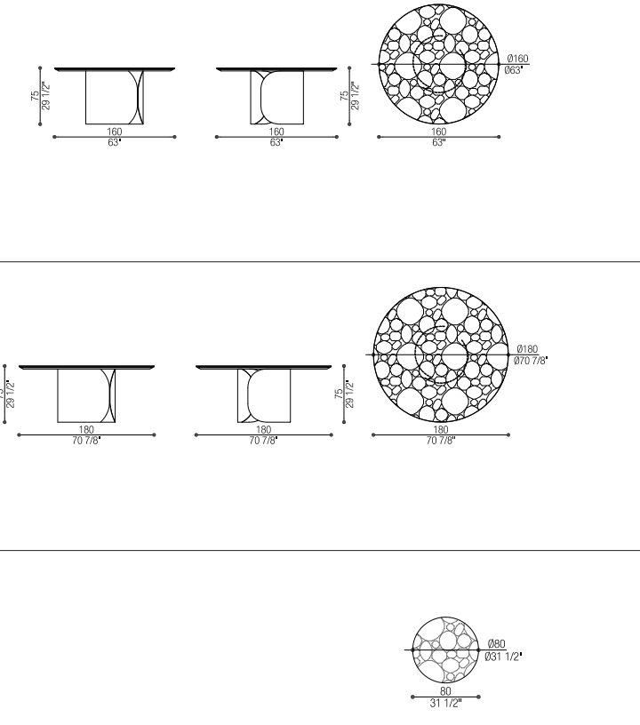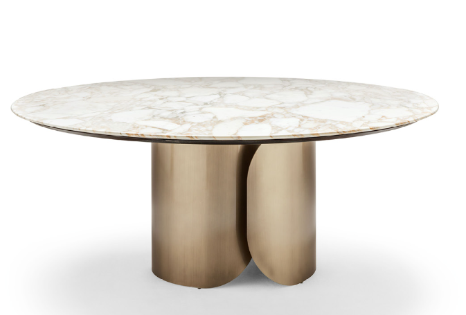 Круглый стол с металлическим основанием Oscar отличается ярким текстурным контрастом между основанием и мраморной столешницей. Округлая цилиндрическая конструкция открывается с одной стороны, демонстрируя внутреннюю полость.