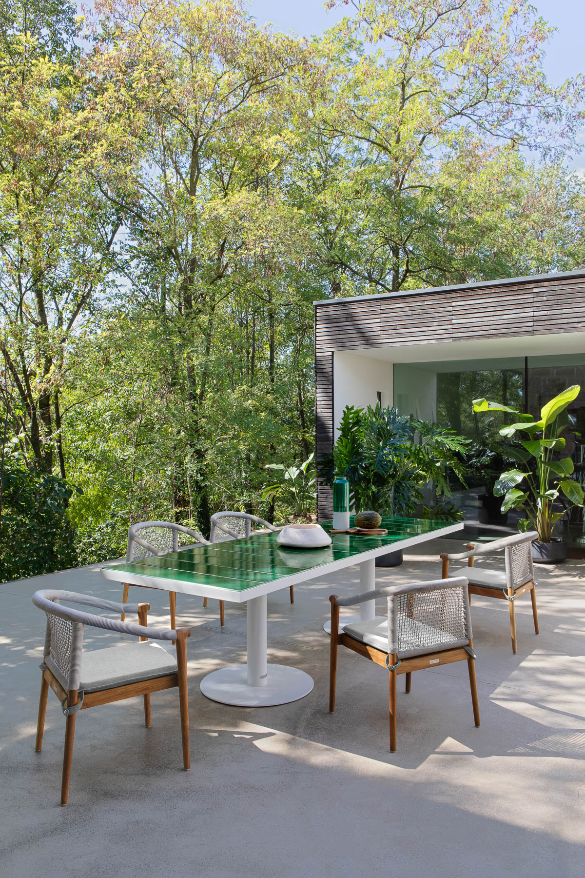 «Пантагрюэль» напоминает о роскошных трапезах в компании: изысканная элегантность сквозит в столешнице, выполненной из глазурованной керамики обволакивающих оттенков, в сочетании с прочным белым или графитовым алюминиевым основанием.