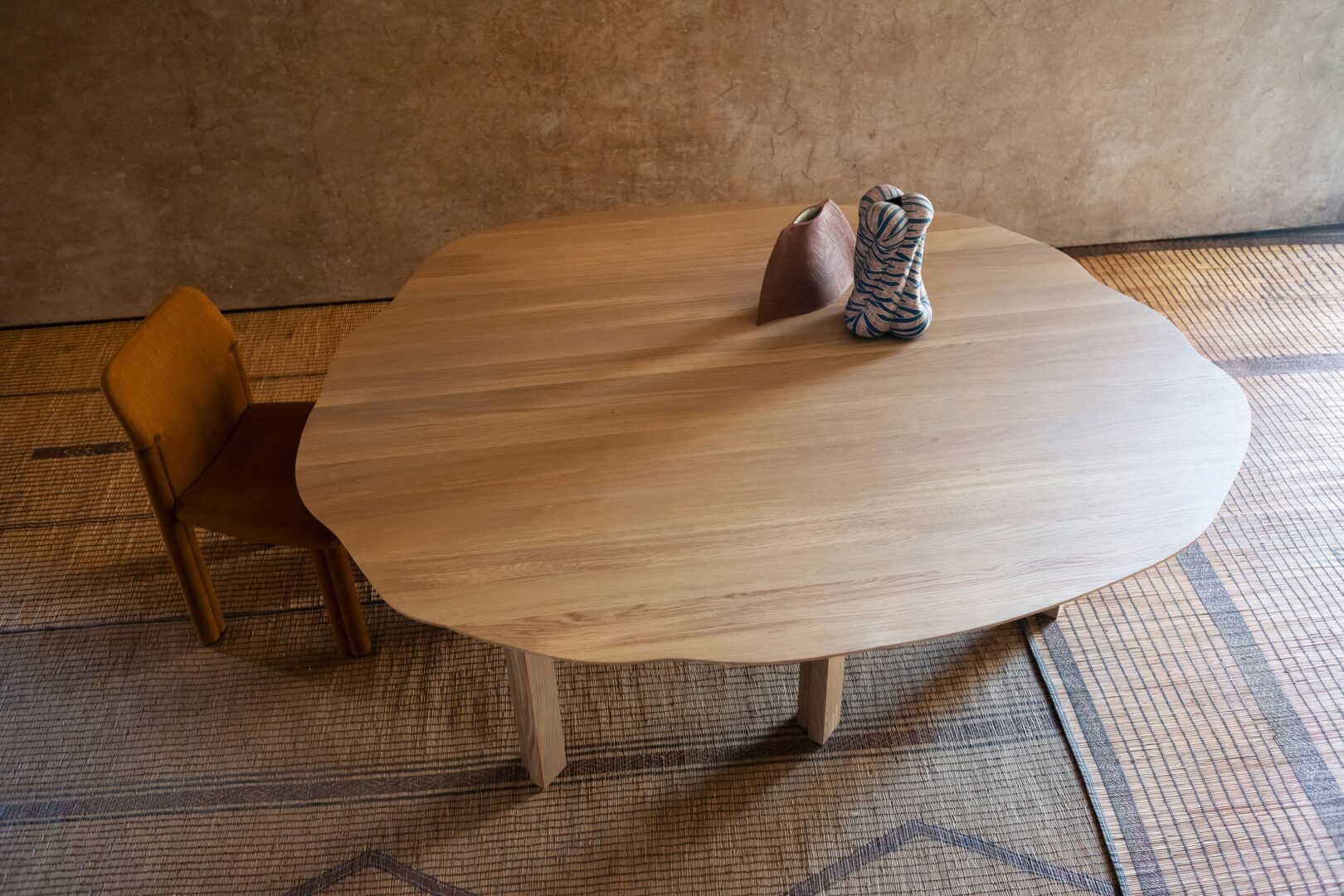 Parker использует неопределенную форму детали из работы Сая Твомбли и переносит ее на широкую столешницу, которая подчеркивает древесину и ее естественные выразительные и конструктивные качества.