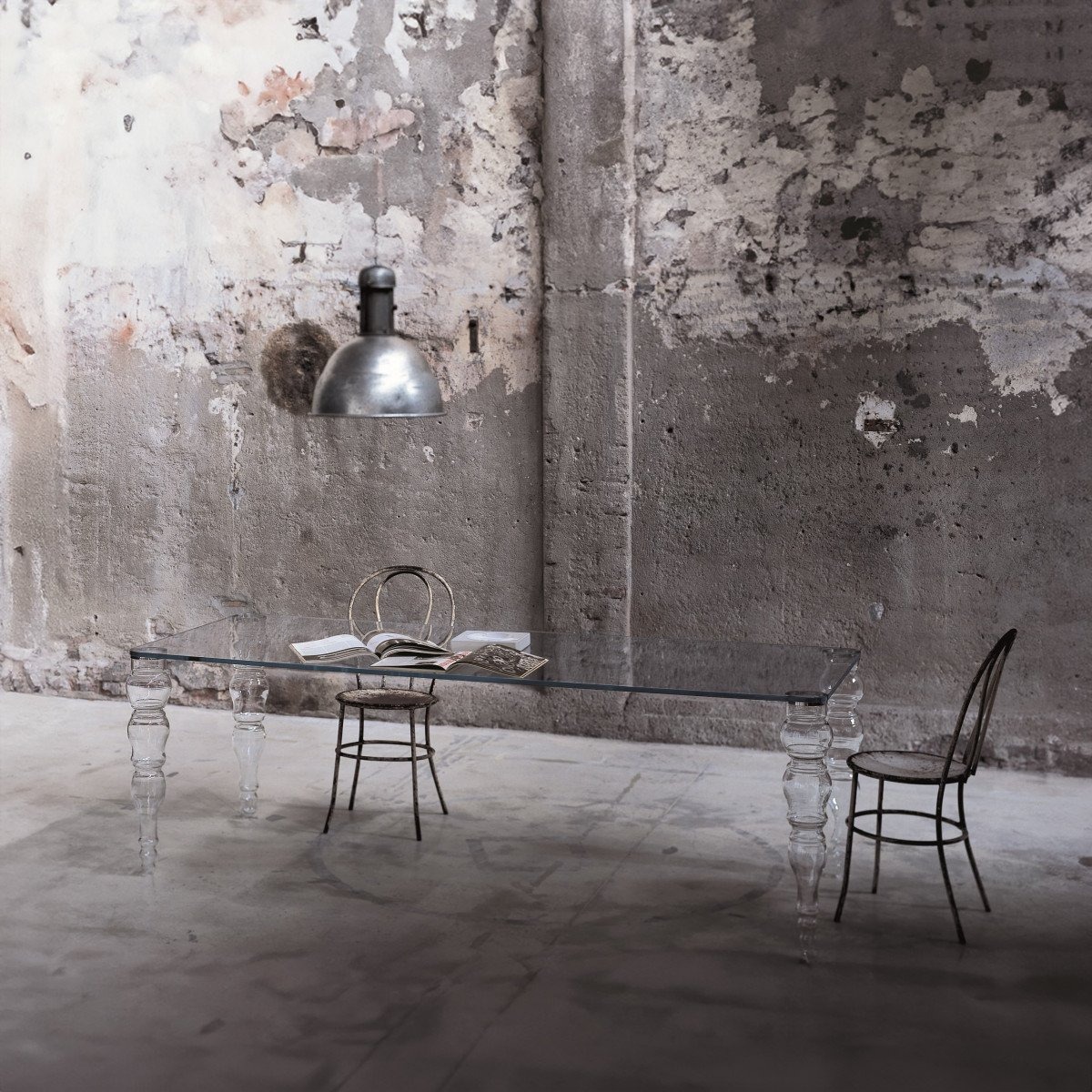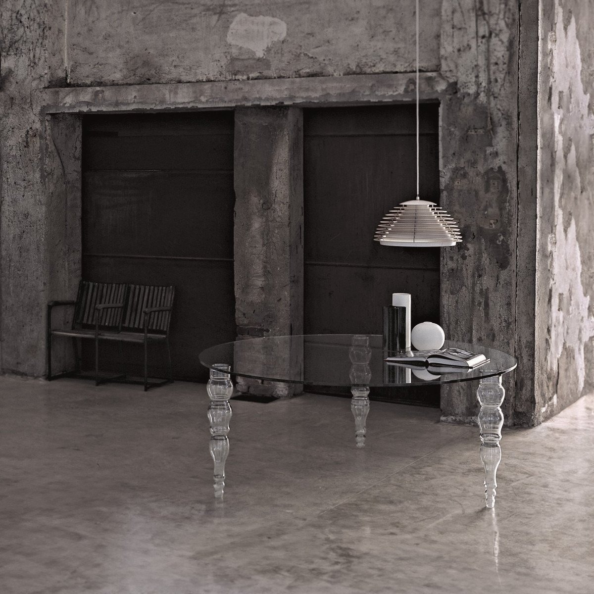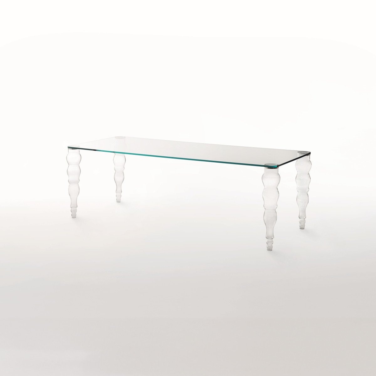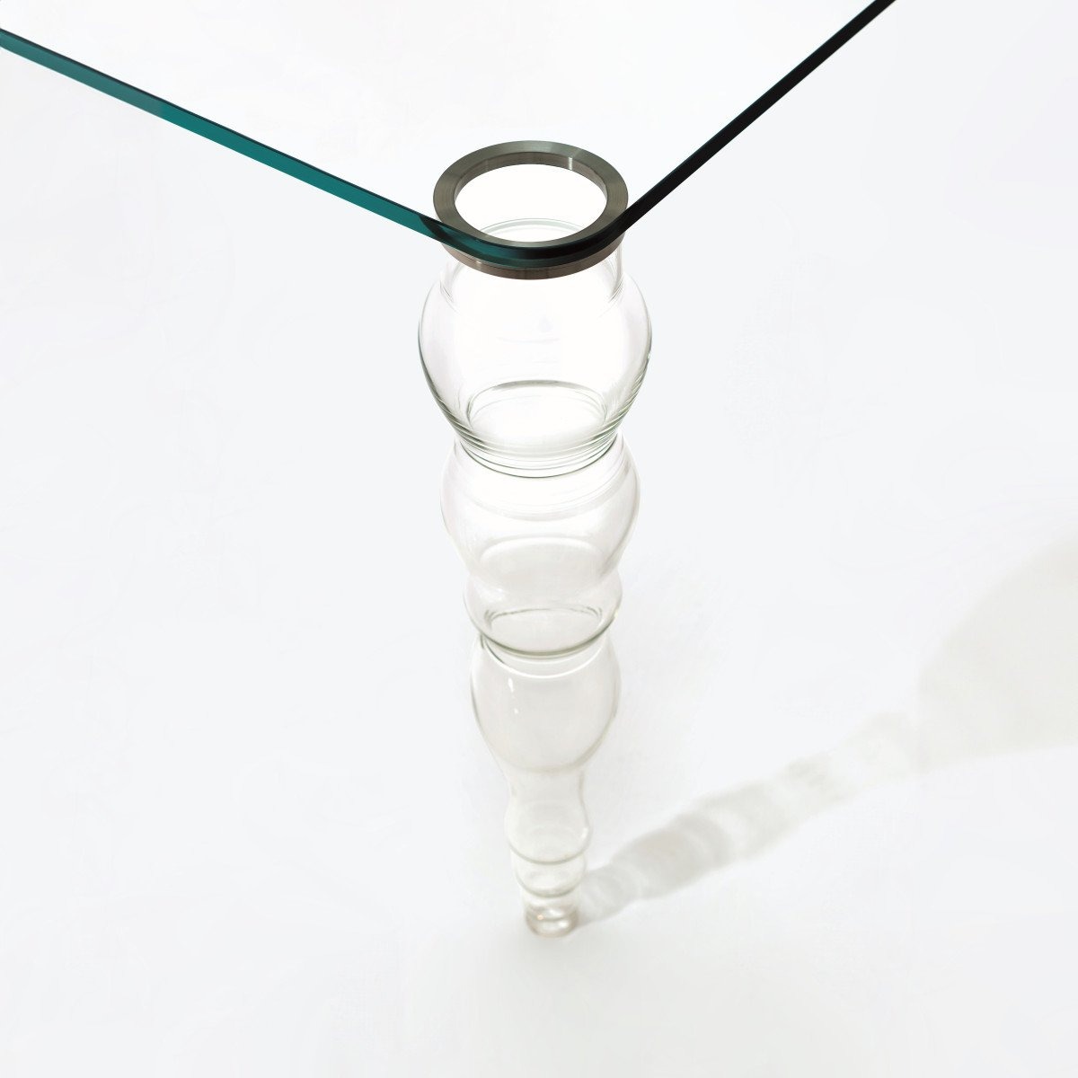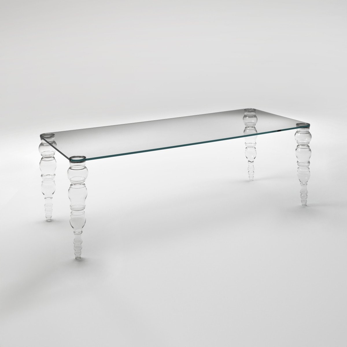 Серия высоких и низких столиков квадратной, прямоугольной и закругленной формы. Столешница может быть изготовлена из прозрачного, сверхлегкого, глянцевого лакированного стекла. Ножки изготовлены из боросиликатного стекла литой формы.