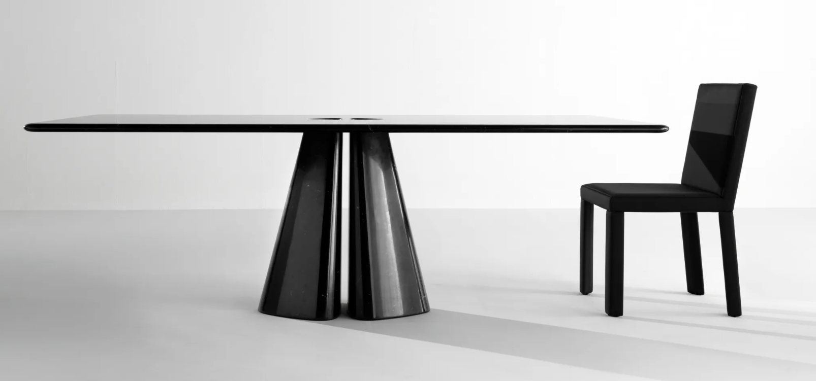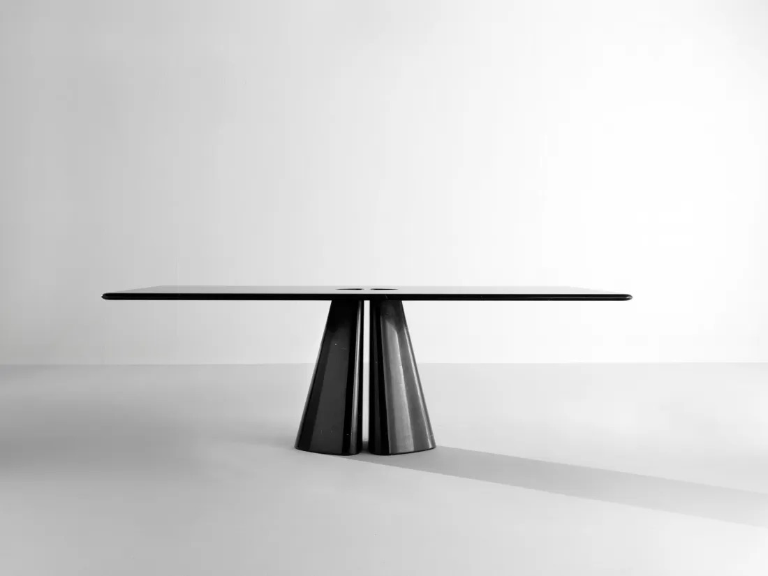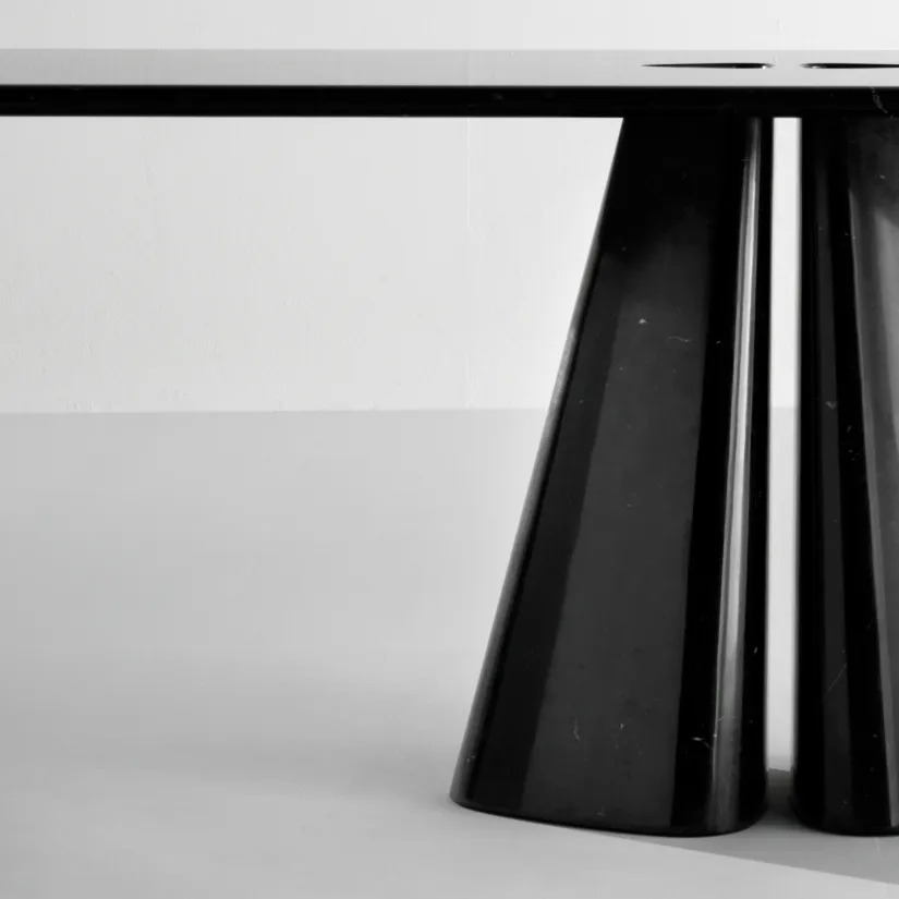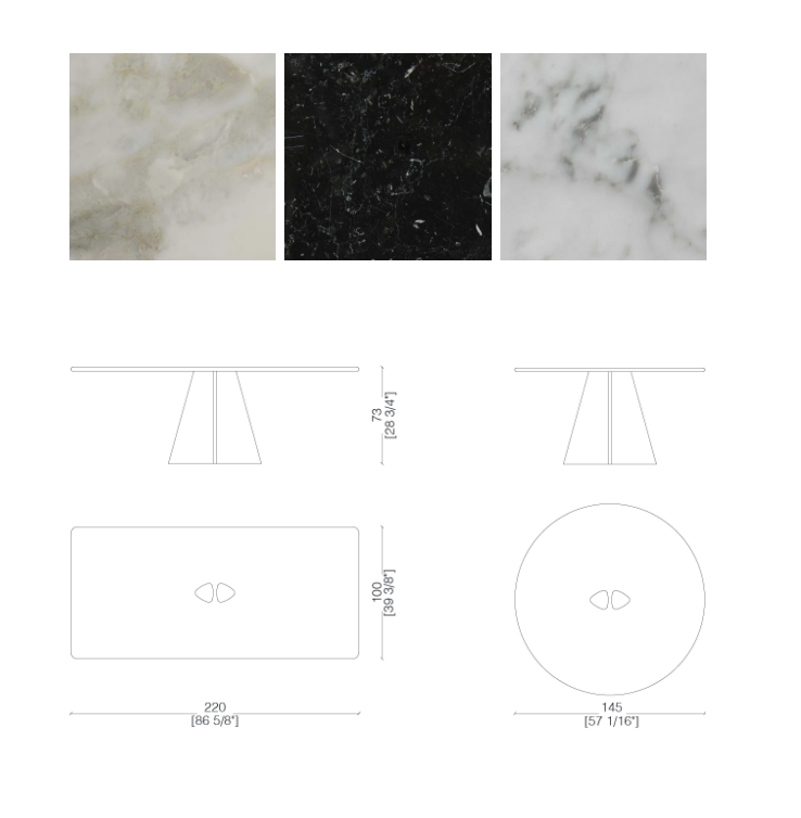 Raja – это коллекция столов, полностью изготовленных из мрамора, со столешницей толщиной 3 см с закругленными краями и основанием с двумя ножками из цельного куска мрамора.