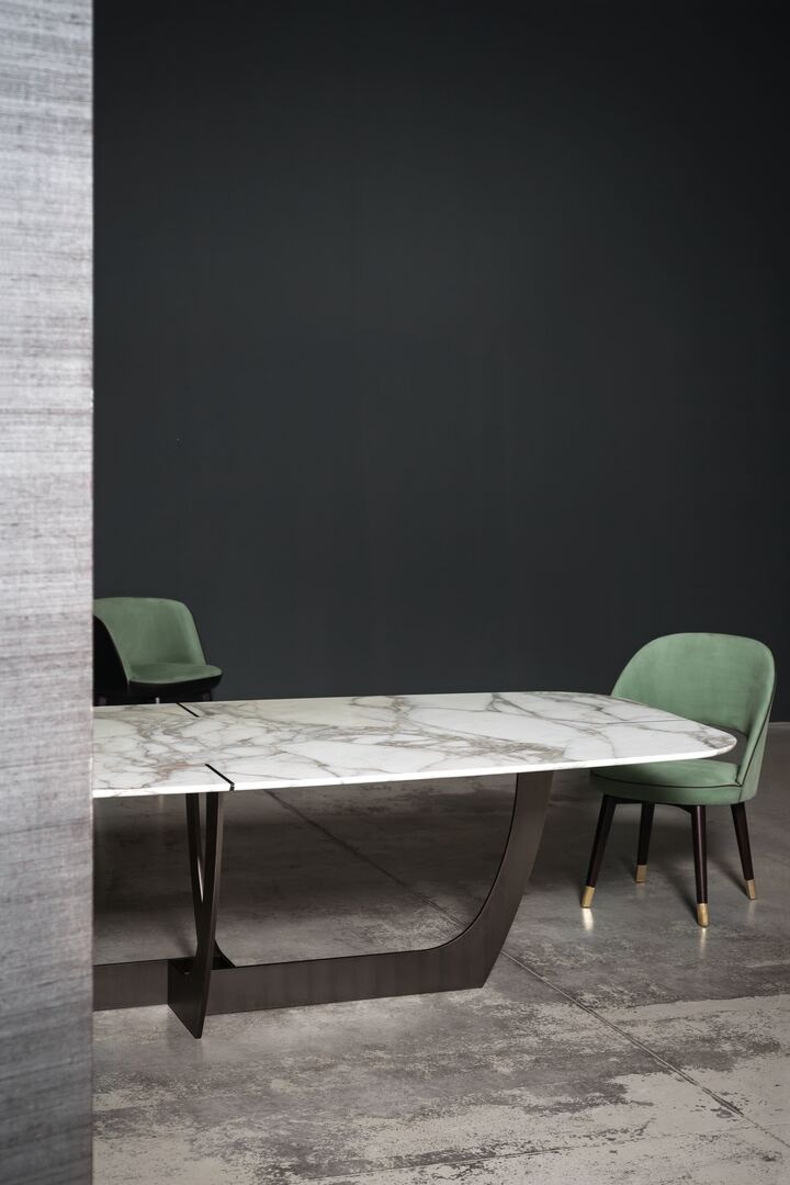 Стол с мраморной столешницей Romeo Stone авторства Роберто Лаццерони — заявление вечной элегантности, предмет обстановки, который воплощает силу и красоту природного камня в скульптурной форме. Монументальная столешница, выполняемая из самых разнообразных видов камня и мрамора, украшена изысканными декоративными элементами из металла, которые идеально сочетаются с отделкой основания, подчеркивая эксклюзивный характер каждого отдельного стола. Пластины матового металла, из которого изготовлено основание, вставлены внутрь стола, что наполняет дизайн впечатляющей и решительной эстетикой. Каждый стол Romeo Stone выглядит уникальным благодаря прожилкам и вариациям цвета на камне, природные несовершенства которого привносят аутентичность и редкостную красоту.